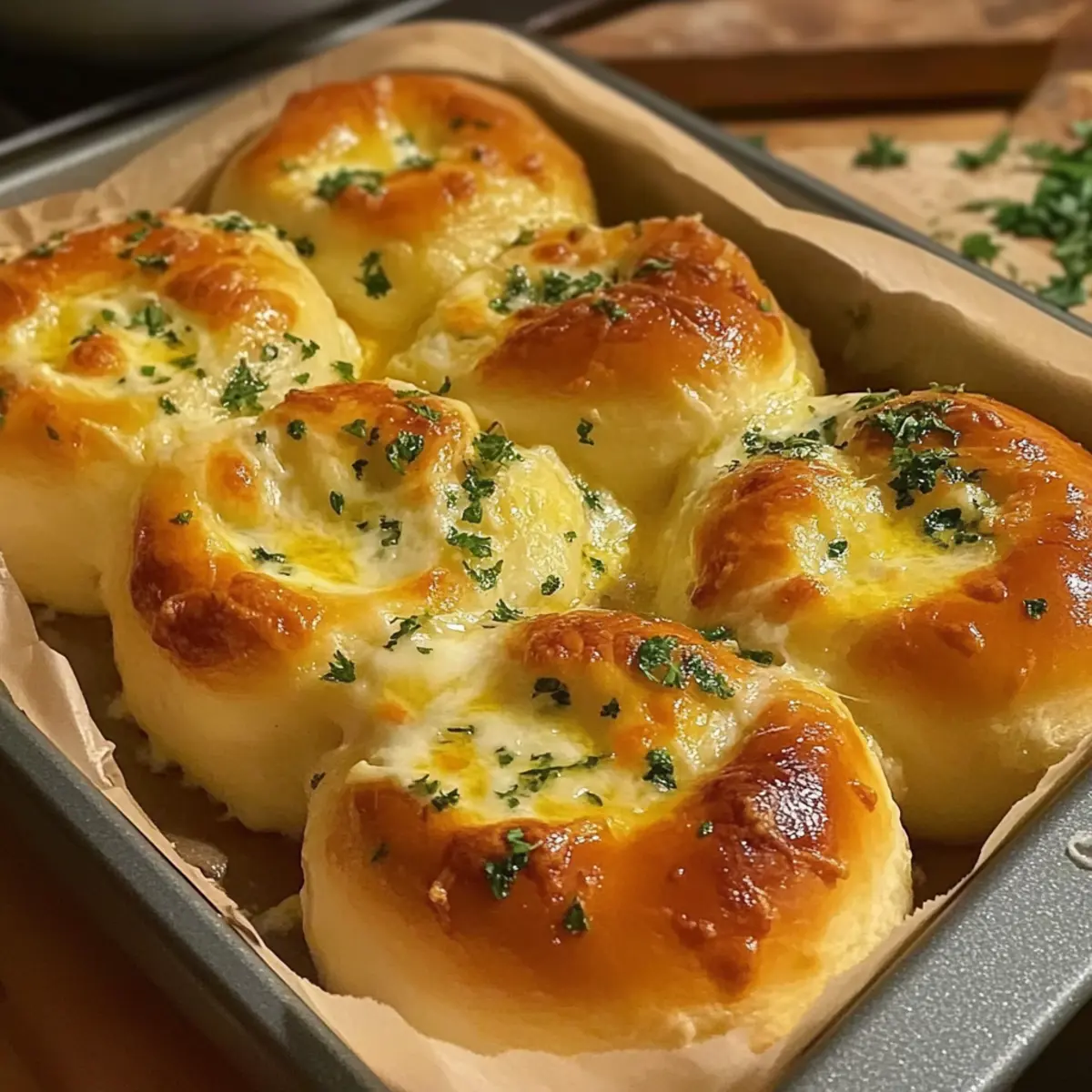 Sobald die butterigen Käseknoblauchbrötchen fertig gebacken sind, bestreiche sie sofort mit der restlichen Knoblauchbutter und streue frisch gehackte Petersilie darüber. Diese letzten Schritte erhöhen das Aroma und die Optik der Brötchen. Serviere sie warm und genieße jeden köstlichen Bissen!