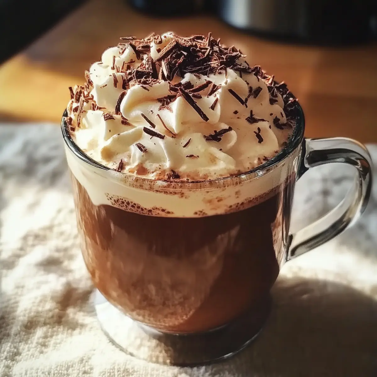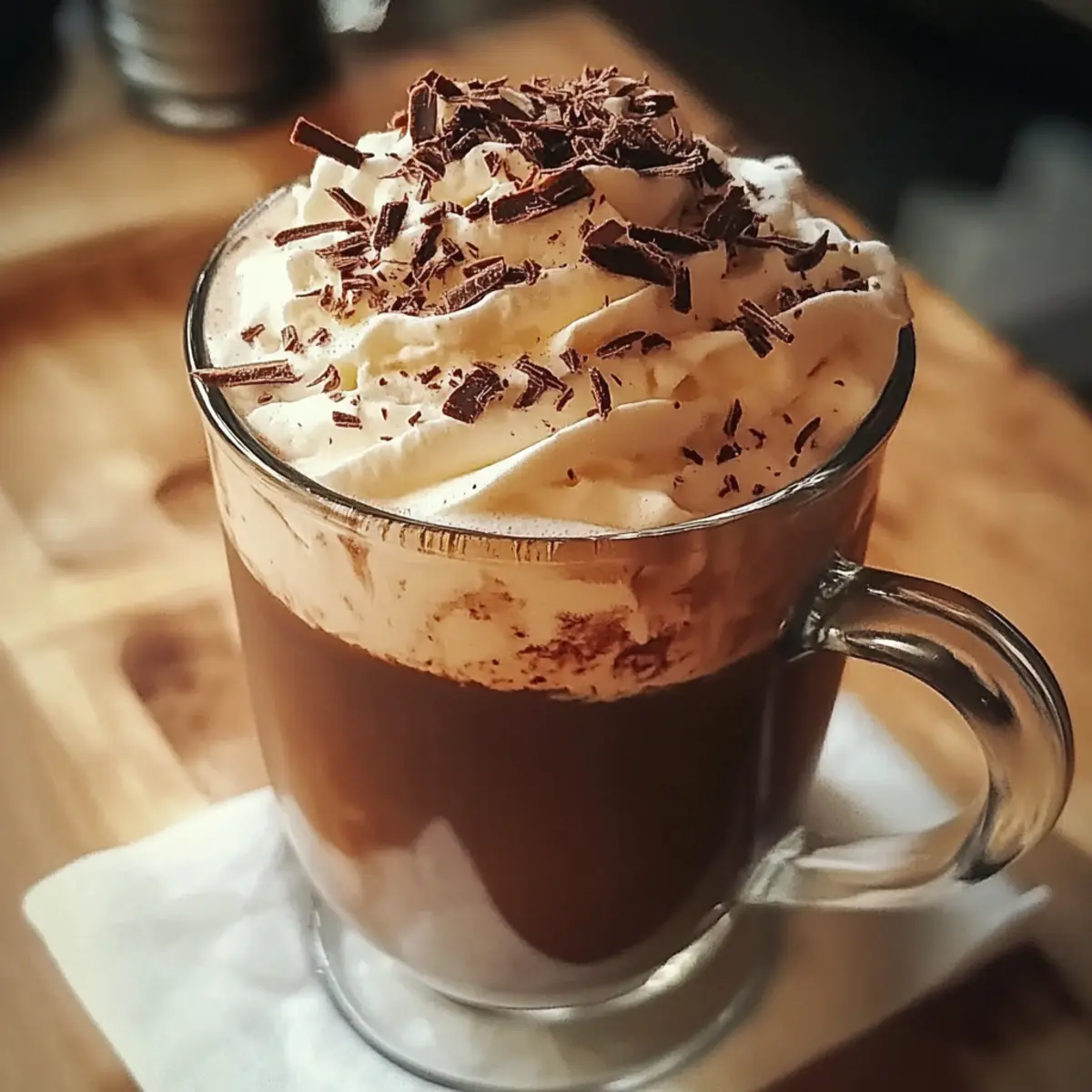 - Kreative Garnierung: Tausche Schokoladenspäne gegen Karamellsauce oder bunte Streusel aus, um deinem Café Mocha eine verspielte und appetitliche Optik zu geben.