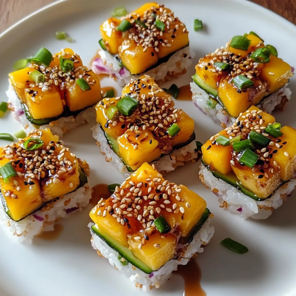 Swicy Mango Knuspriger Reis Sushi Bites genießen