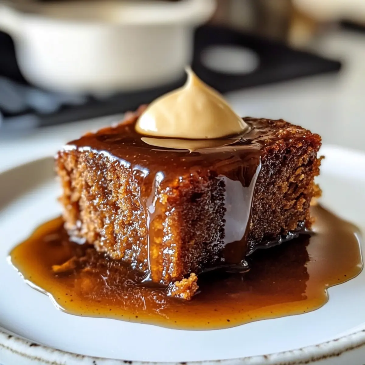 Warmes klebriges Karamellpudding mit buttriger Sauce