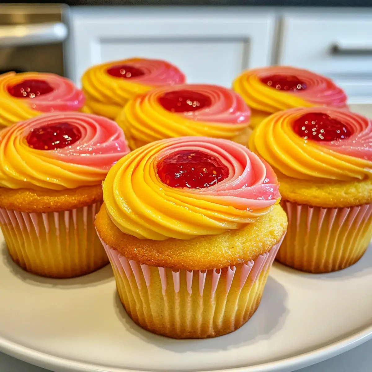 Mango-Erdbeer-Sonnenuntergang-Cupcakes für den Sommer