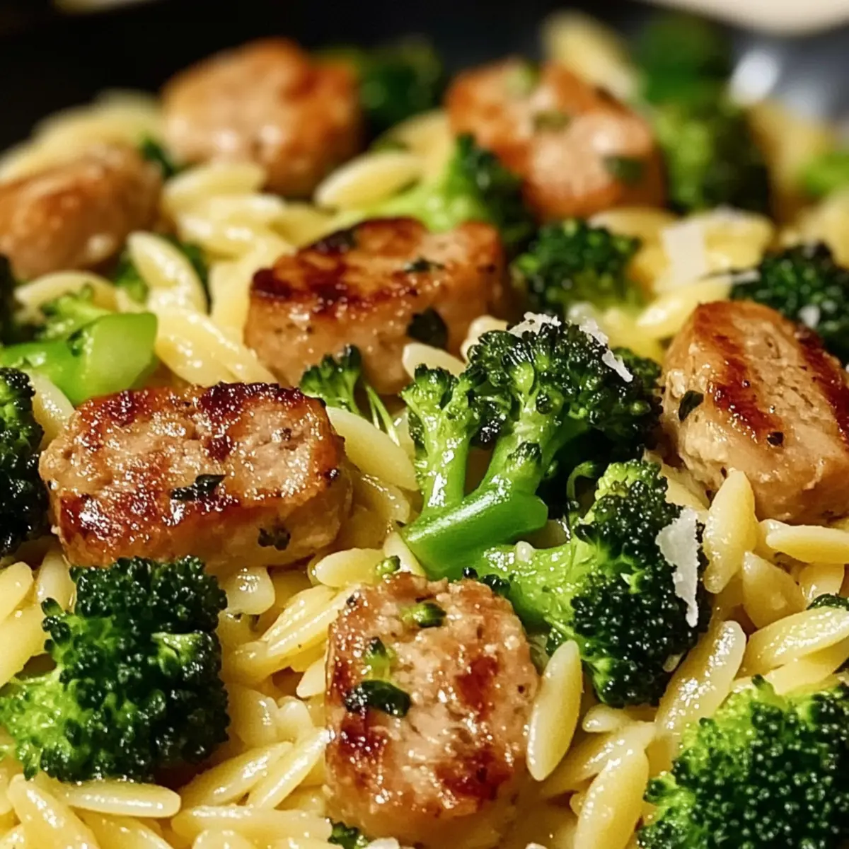 Hähnchenwurst und Brokkoli Orzo in 35 Minuten