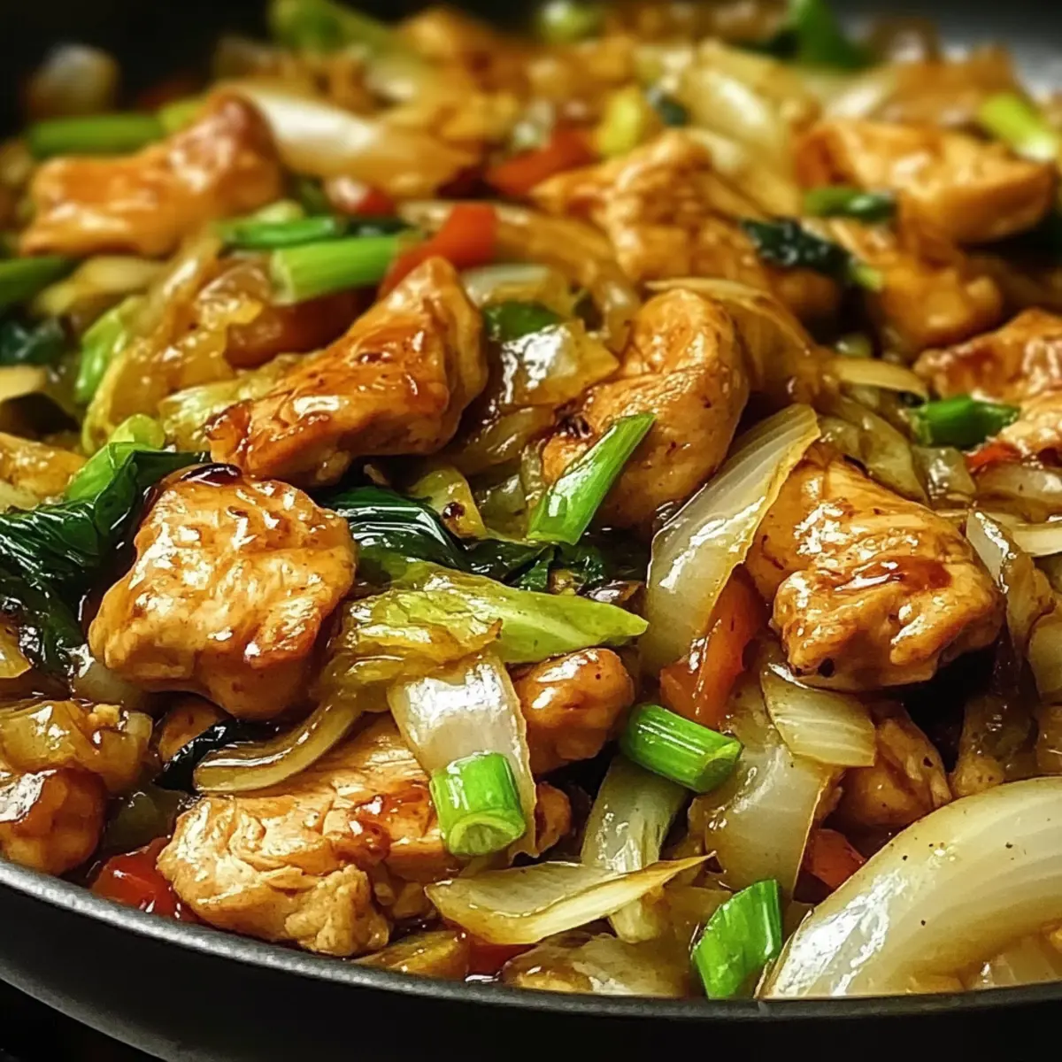 Chinesisches Hähnchen Zwiebel Kohl Pfanne einfach gemacht