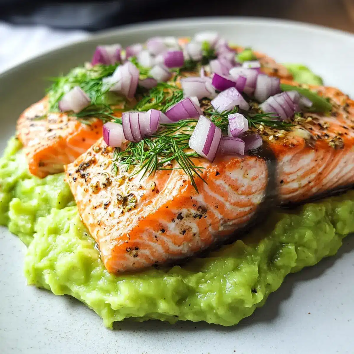 Gebackener Lachs mit Avocado-Püree leicht gemacht