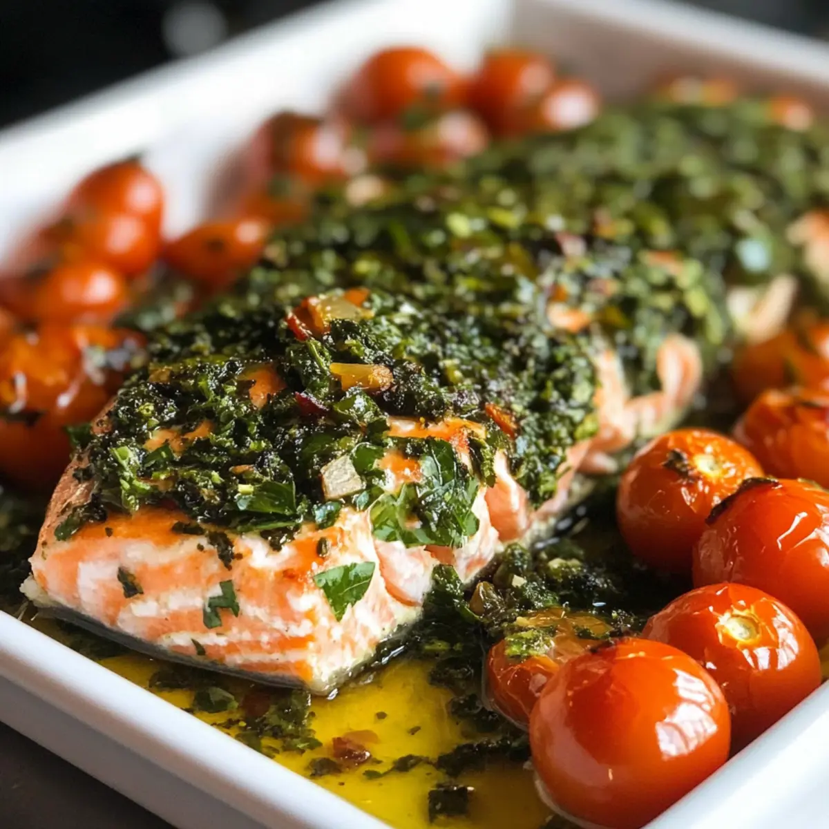 Kräuterkrustenlachs mit Knoblauch und Tomaten