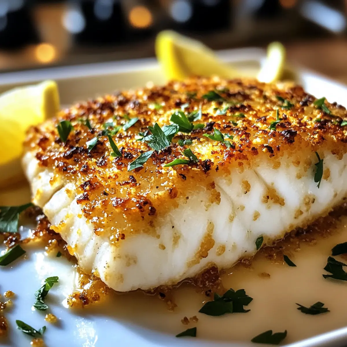 Knoblauch Parmesan Krusten Heilbutt in 15 Minuten