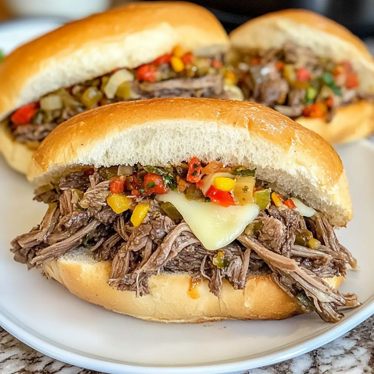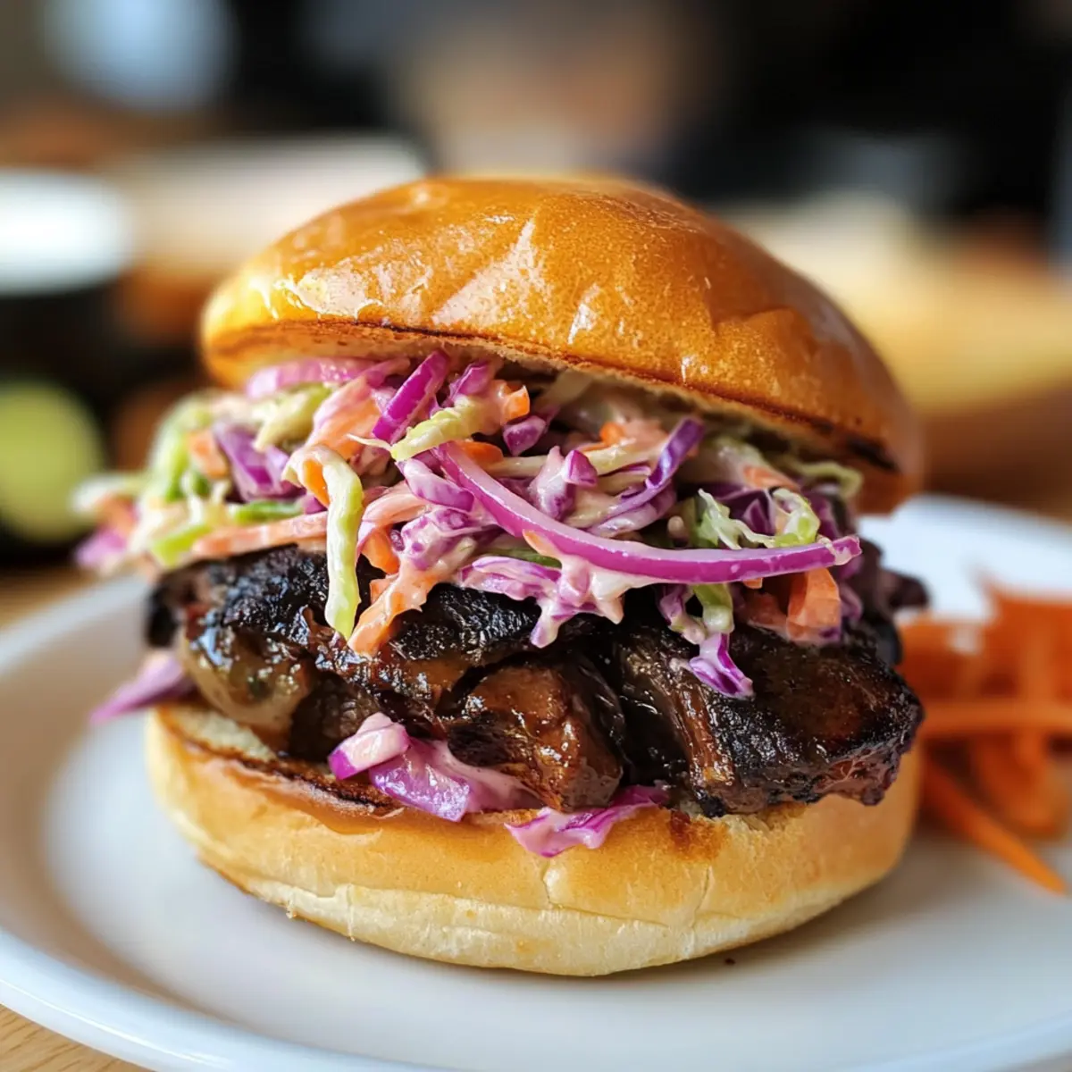 Oxtail-Sandwich mit cremigem Coleslaw und Pickles
