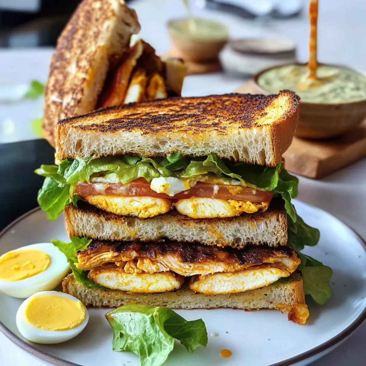 Tandoori-Hühnchen-Club-Sandwich mit würziger Mayo