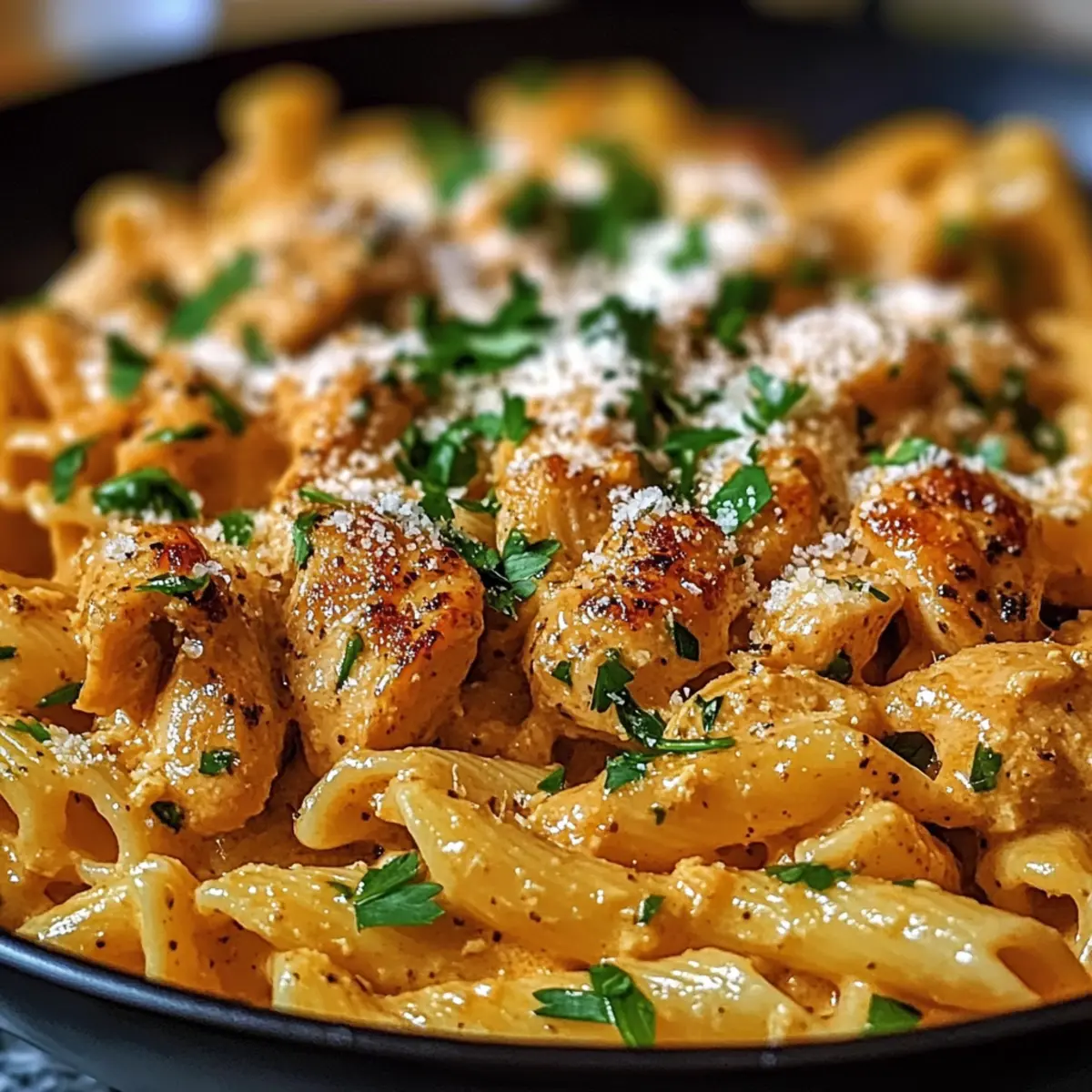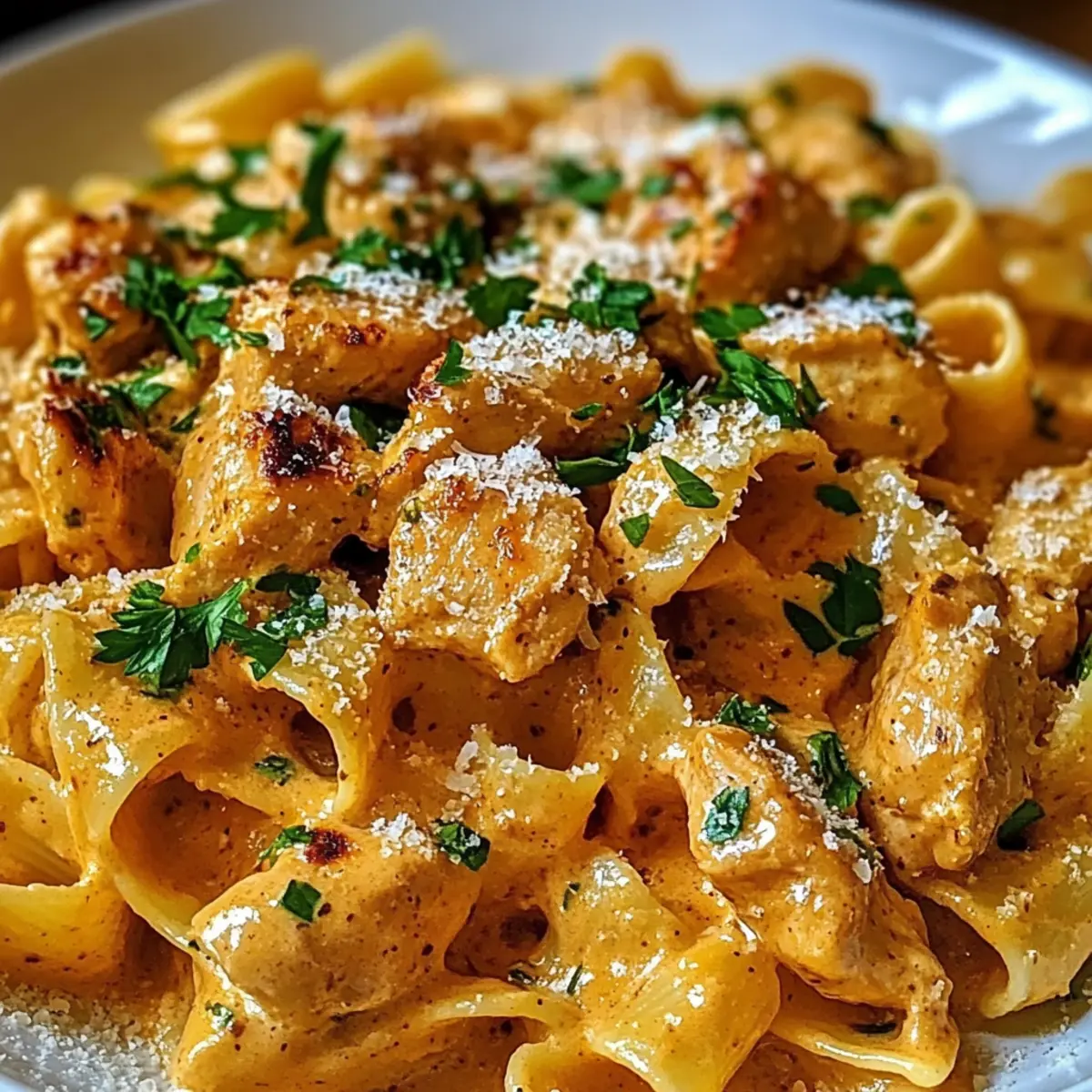 Dieses Rezept ist sehr anpassbar! Um es vegan zu gestalten, verwende pflanzliche Hähnchenalternativen und eine pflanzliche Sahne. Bei Allergien achte darauf, glutenfreie Pasta sowie Zutaten ohne Allergene wie Nüsse oder Milchprodukte auszuwählen.