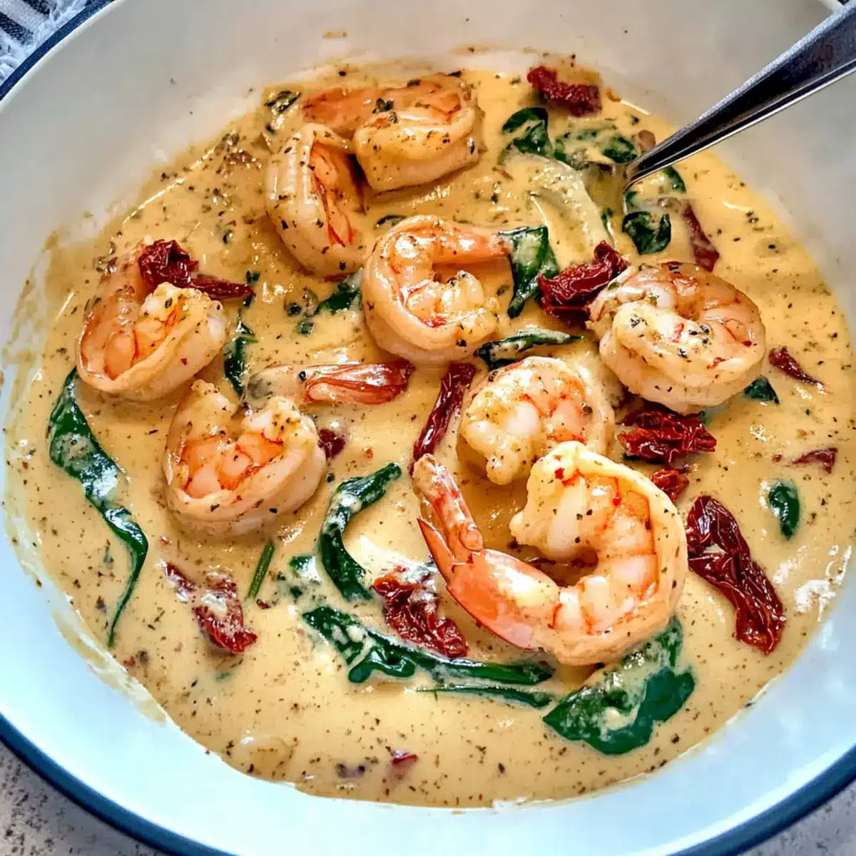 Jede Zutat bringt ihren eigenen Zauber in die Cremige Knoblauchbutter-Toskanische Garnelen und macht dieses Gericht zu einem wahren Genuss!