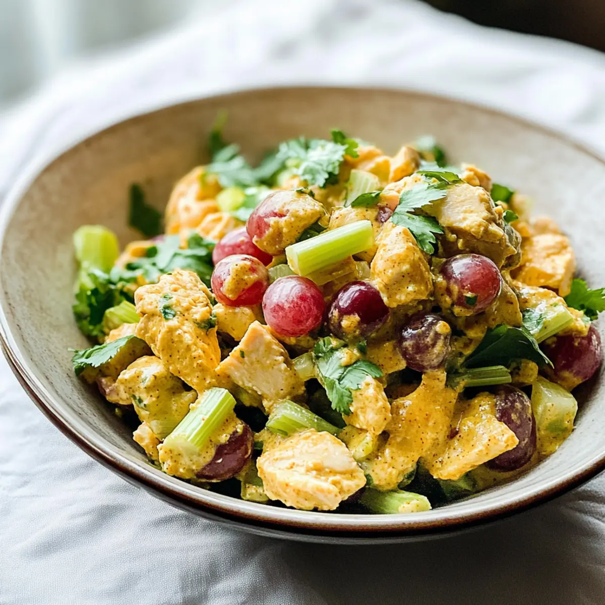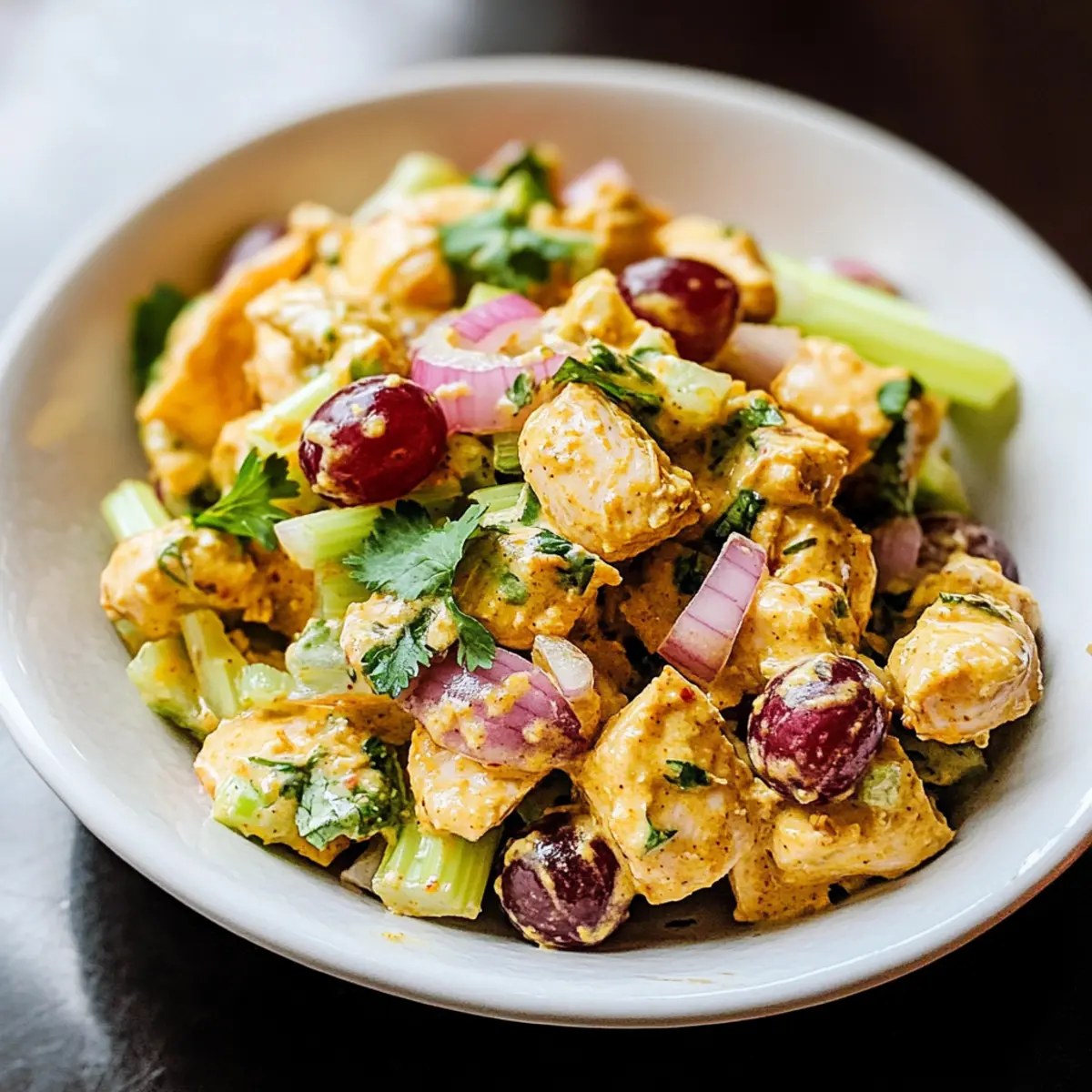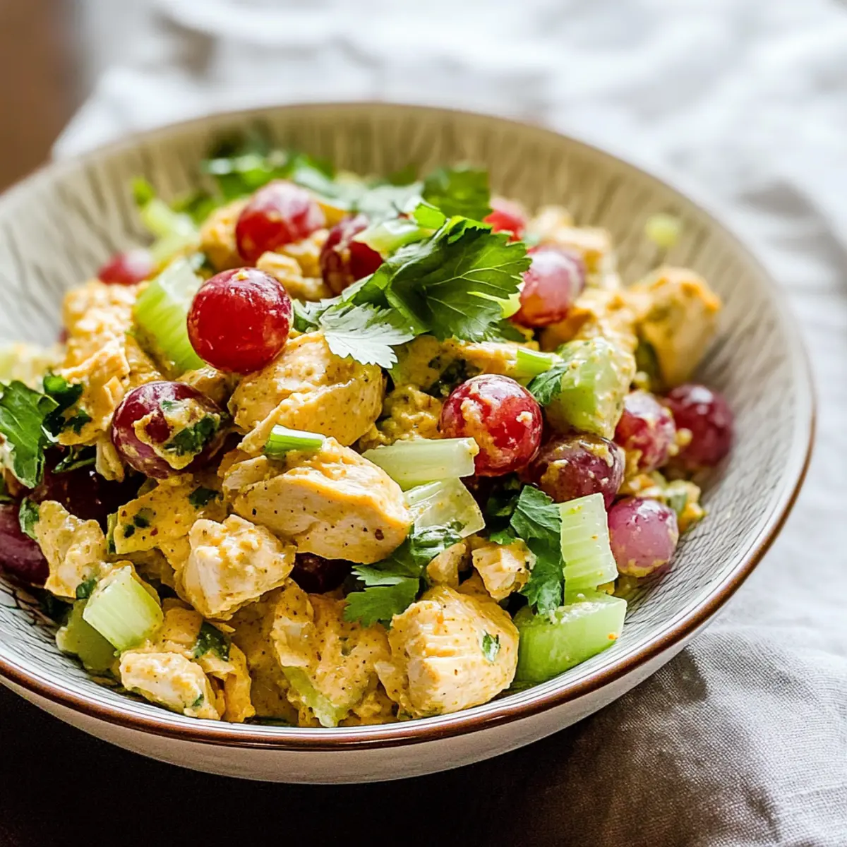 Mit einem knackigen Klick auf den Deckel der Kühlschranktür habe ich gestern meinen neuen Lieblingssalat entdeckt: den Curryküchensalat. Diese köstliche Kreation kombiniert zartes Hühnerfleisch mit einer cremigen, mayo-freien Curry-Dressing, das nicht nur schnell zubereitet, sondern auch ganz nach deinem Geschmack angepasst werden kann. Ergänzt wird dieser Salat durch die erfrischende Süße von roten Trauben und den knackigen Bissen von Sellerie – perfekt für ein schnelles Mittagessen oder als leckeres Abendessen nach einem langen Tag. Die Vorteile sind unübersehbar: Es handelt sich um eine gesunde Mahlzeit, die du ohne viel Aufwand zubereiten kannst, und obendrein ist sie ideal für die Vorbereitung in der Woche. Bist du bereit, mit mir die köstliche Welt des Curryküchensalats zu erkunden?