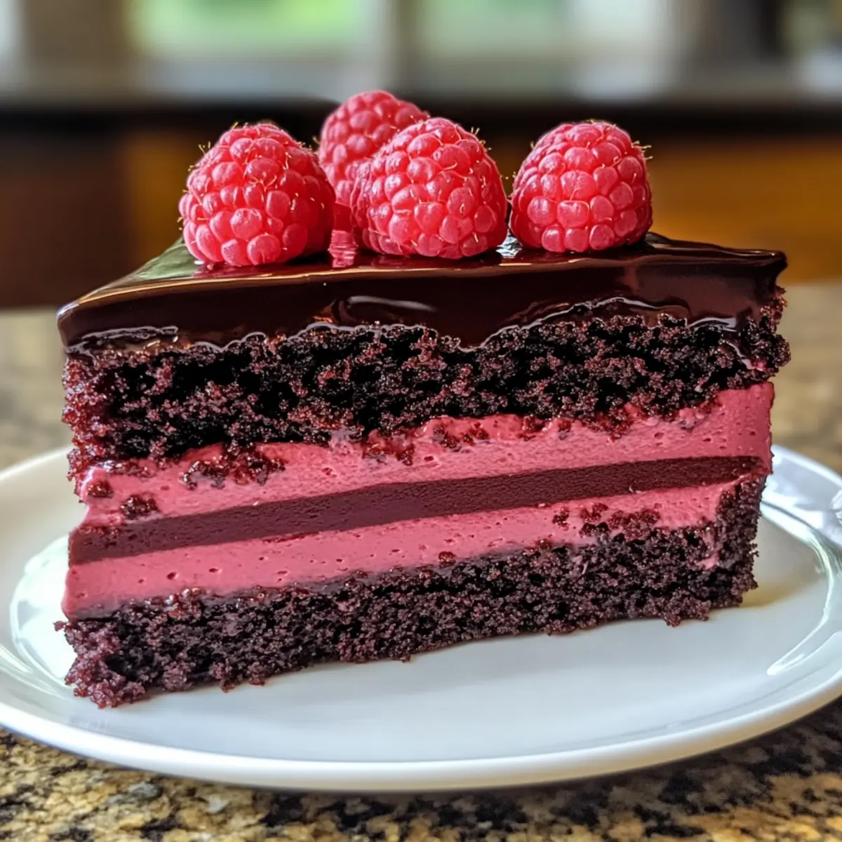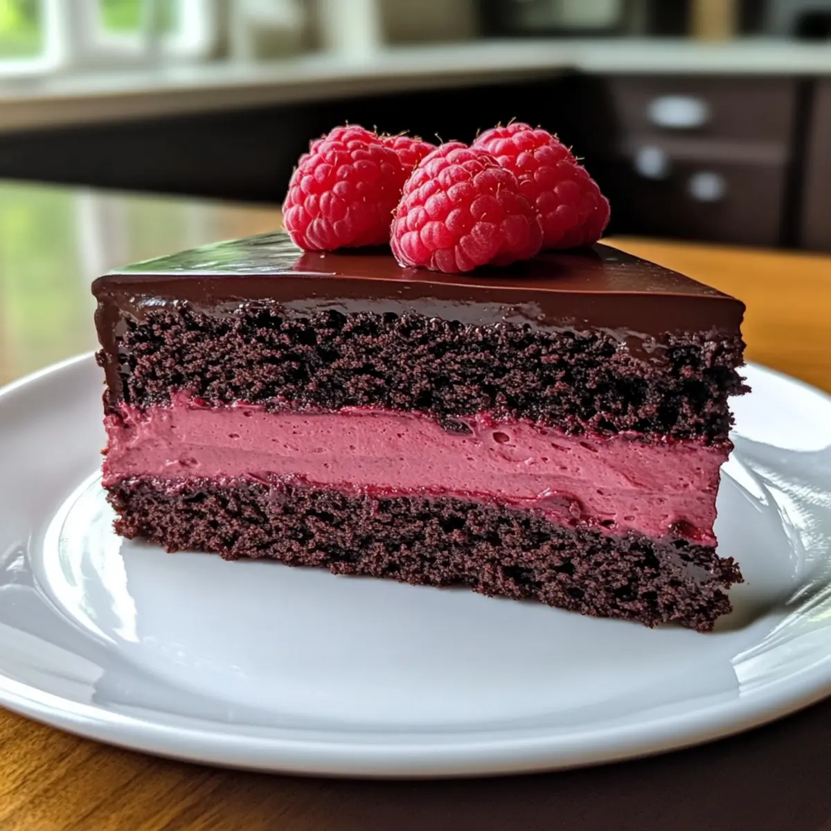 Einzigartiger Genuss: Diese Dunkle Schokoladen-Himbeer-Mousse-Torte kombiniert die reichhaltige Tiefe der dunklen Schokolade mit der Frische der Himbeeren zu einem geschmacklichen Erlebnis, das begeistert.