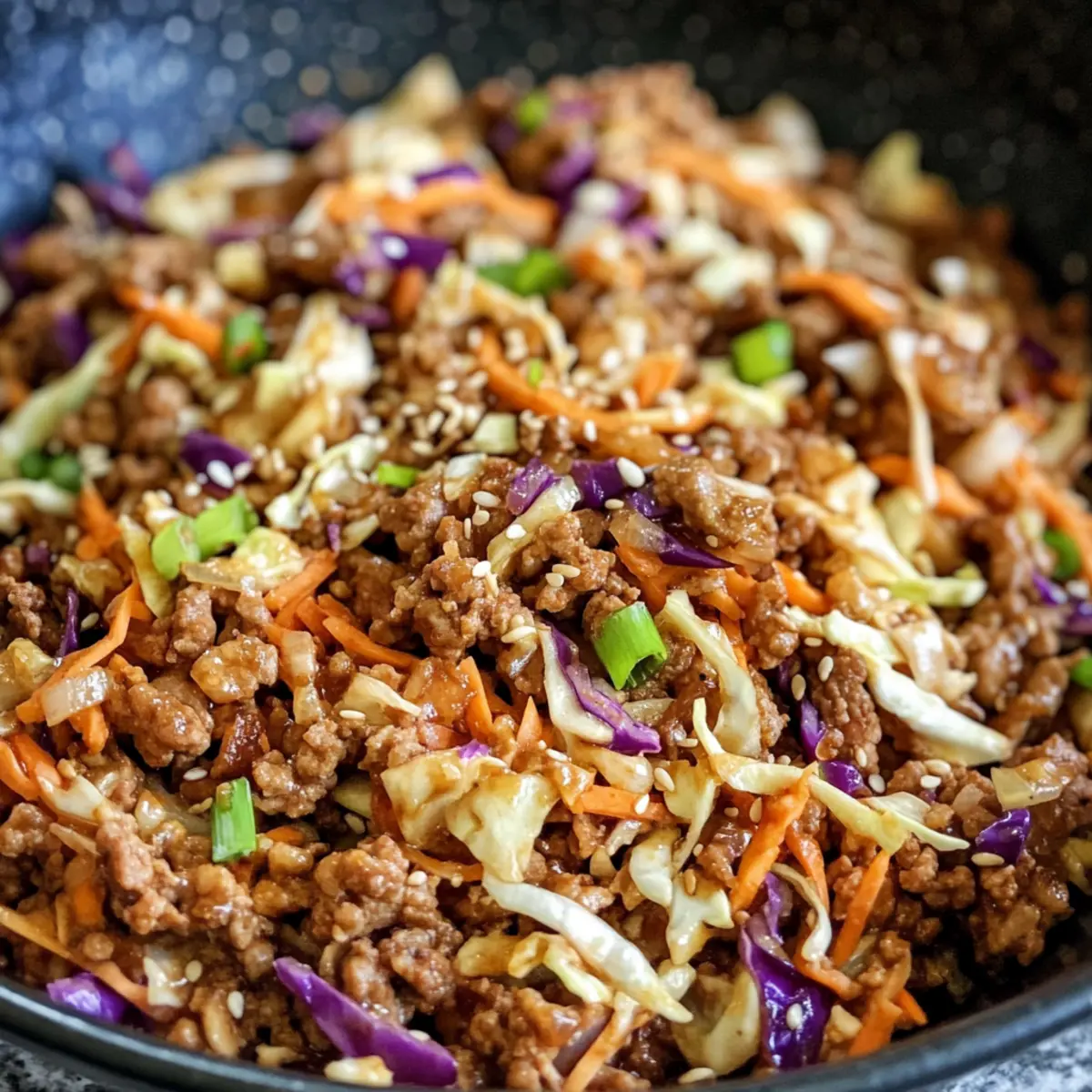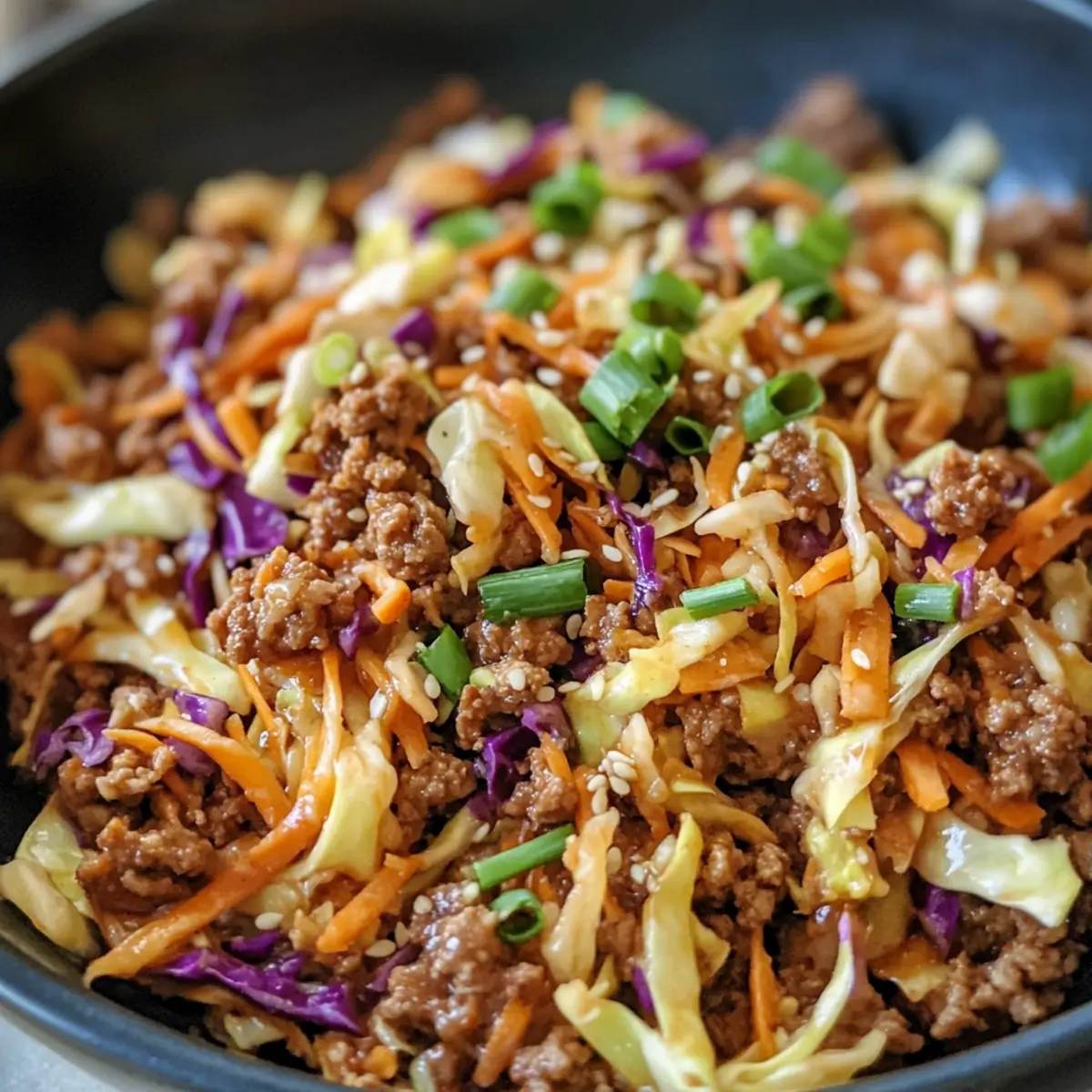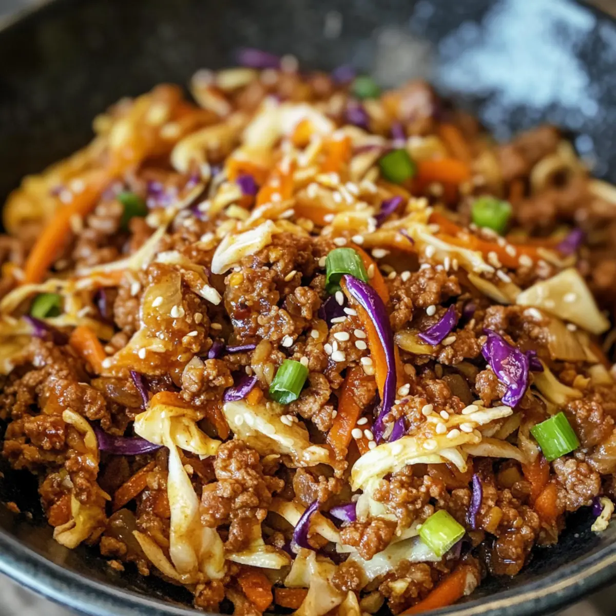 Das Eierreis in einer Schüssel ist perfekt für die Vorbereitung im Voraus! Sie können die Putenfarce bis zu 3 Tage im Voraus anbraten und in einem luftdichten Behälter im Kühlschrank aufbewahren, um Qualität und Geschmack zu erhalten. Das Gemüse – in diesem Fall der Coleslaw-Mix – kann ebenfalls vorbereitet werden, da es frisch bleibt und einfach hinzugefügt werden kann, wenn Sie bereit sind zu kochen. Achten Sie darauf, die Frühlingszwiebeln und Sesamsamen erst kurz vor dem Servieren hinzuzufügen, um ihre Knackigkeit zu bewahren. Wenn es Zeit ist, das Gericht zu genießen, erhitzen Sie die Mischung einfach in einer Pfanne, fügen Sie die zusätzlichen Gewürze hinzu und garnieren Sie sie. So erhalten Sie das volle, frische Geschmackserlebnis, auch wenn Sie im Voraus planen!