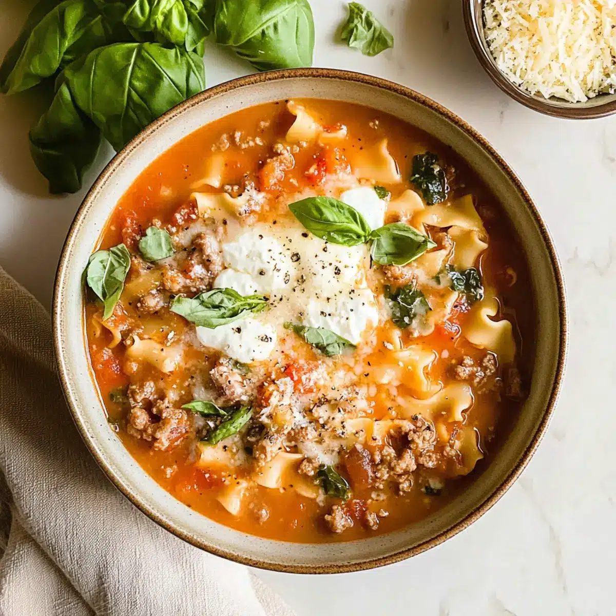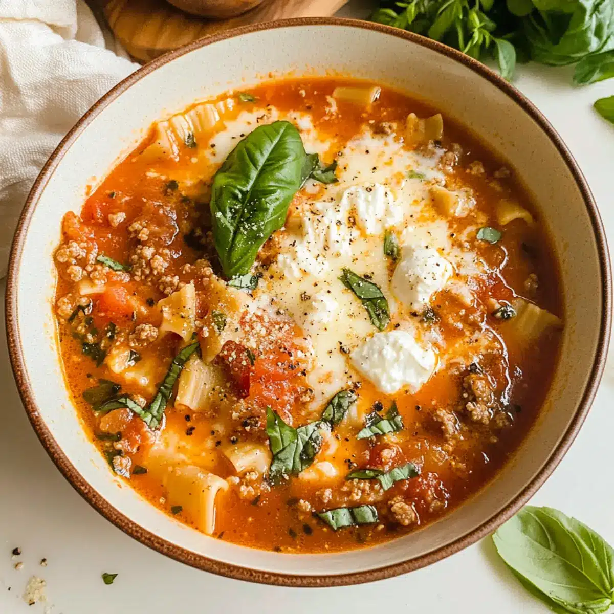 Mit diesen Zutaten für die einfache cremige Lasagna Suppe verwandelst du dein Abendessen in ein unvergessliches Erlebnis!