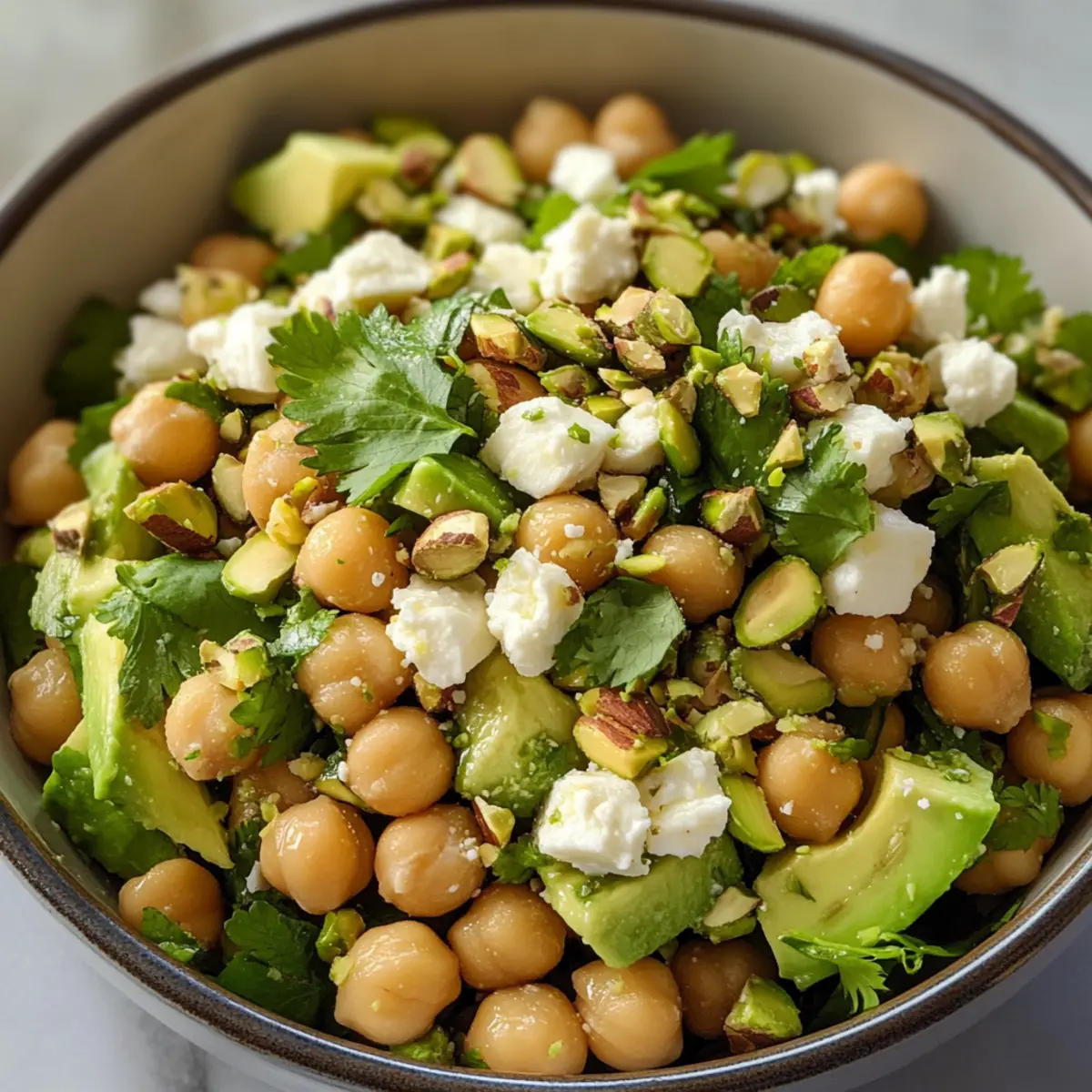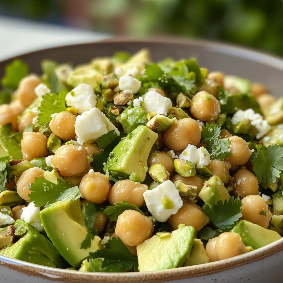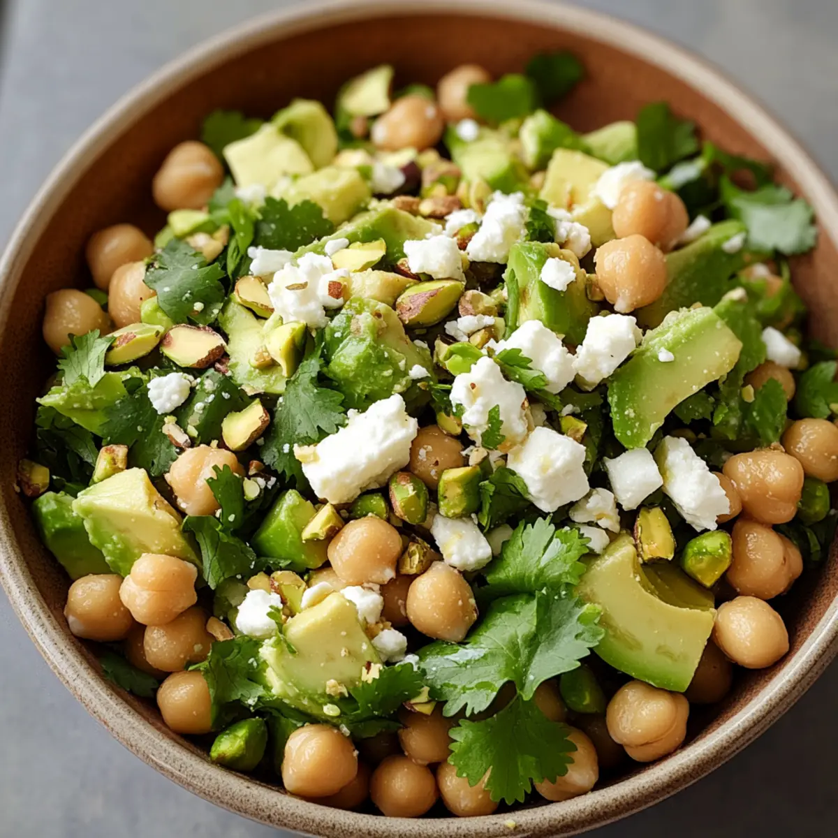 Gesunde Zutaten: Diese Mischung aus Kichererbsen, Avocado und Feta bietet eine nährstoffreiche und proteinreiche Basis, die gesund und sättigend ist.