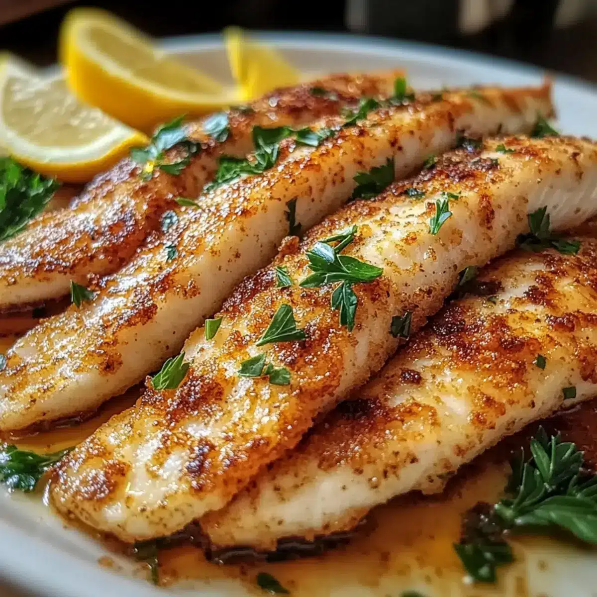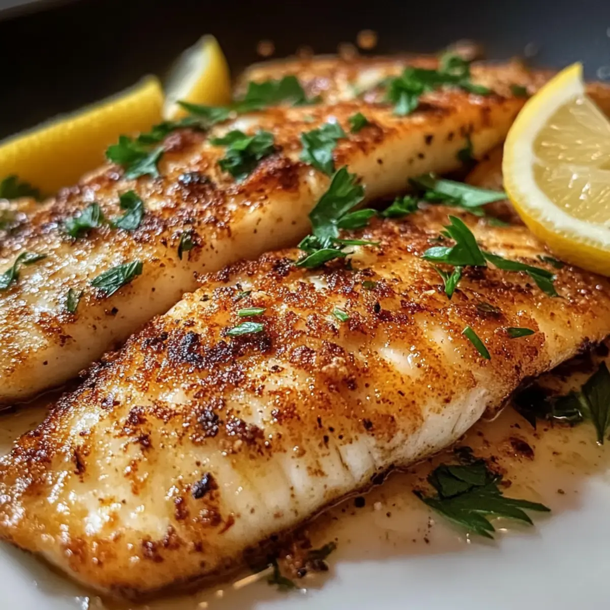 Nimm die fertigen Tilapiafilets aus der Pfanne und lasse sie kurz auf einem Teller ruhen. Vor dem Servieren beträufele die Filets großzügig mit frischem Zitronensaft, um die Aromen aufzufrischen. Diese letzte Note sorgt dafür, dass das Gericht lebendig und frisch schmeckt. Genieße dein Einfaches Pfannen-Tilapia Rezept sofort für das beste Geschmackserlebnis!