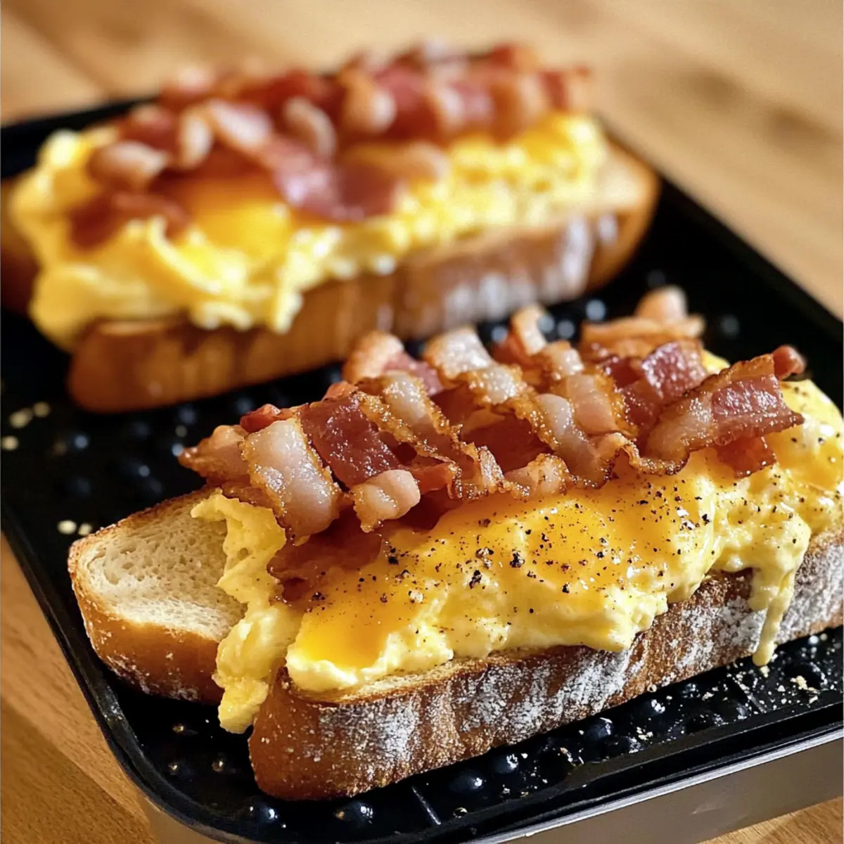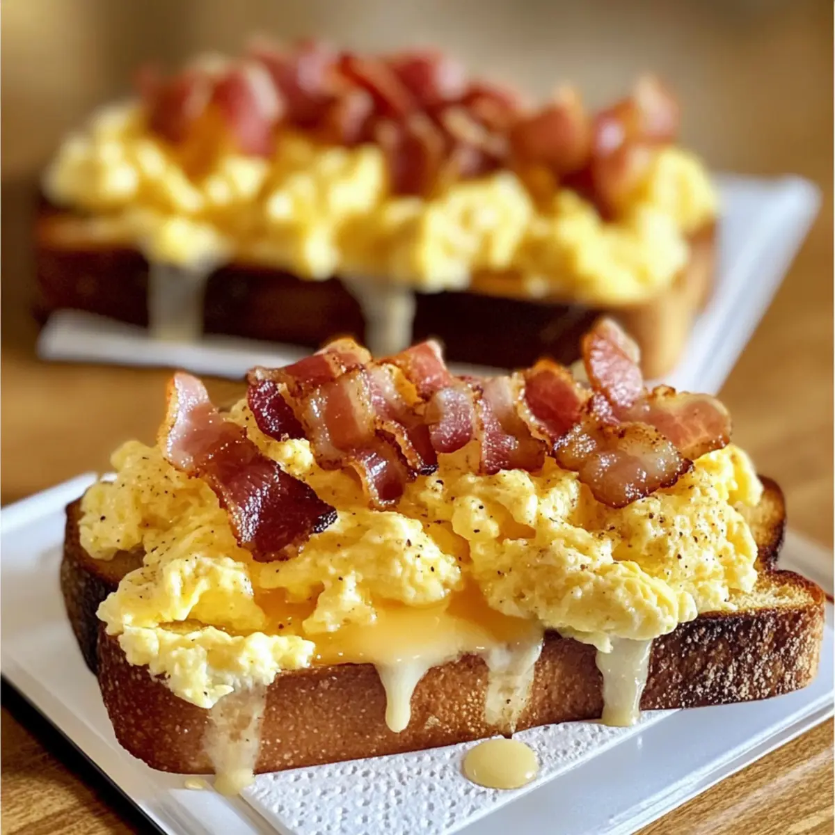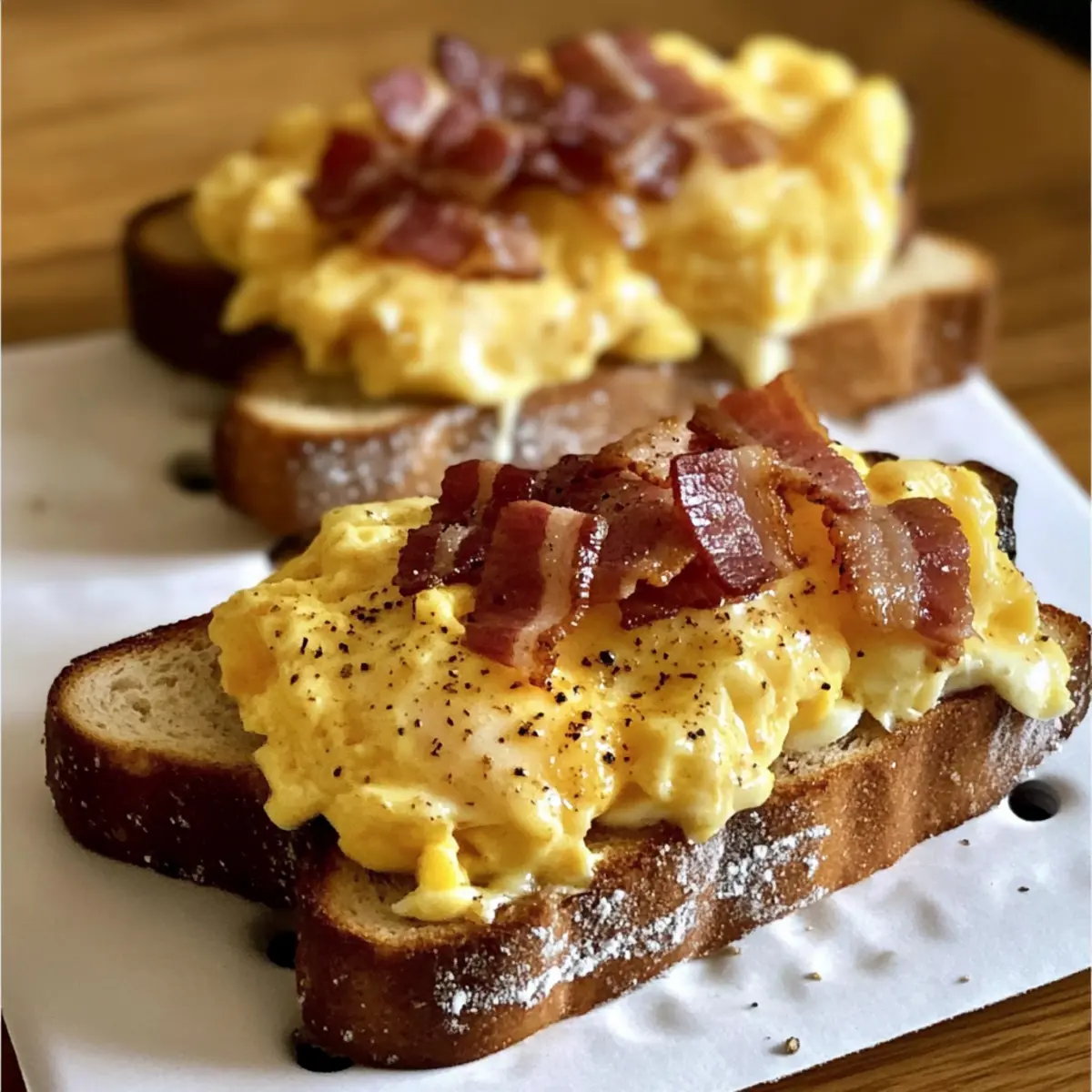 Fluffige weiche Eier auf knusprigem Knoblauchtoast