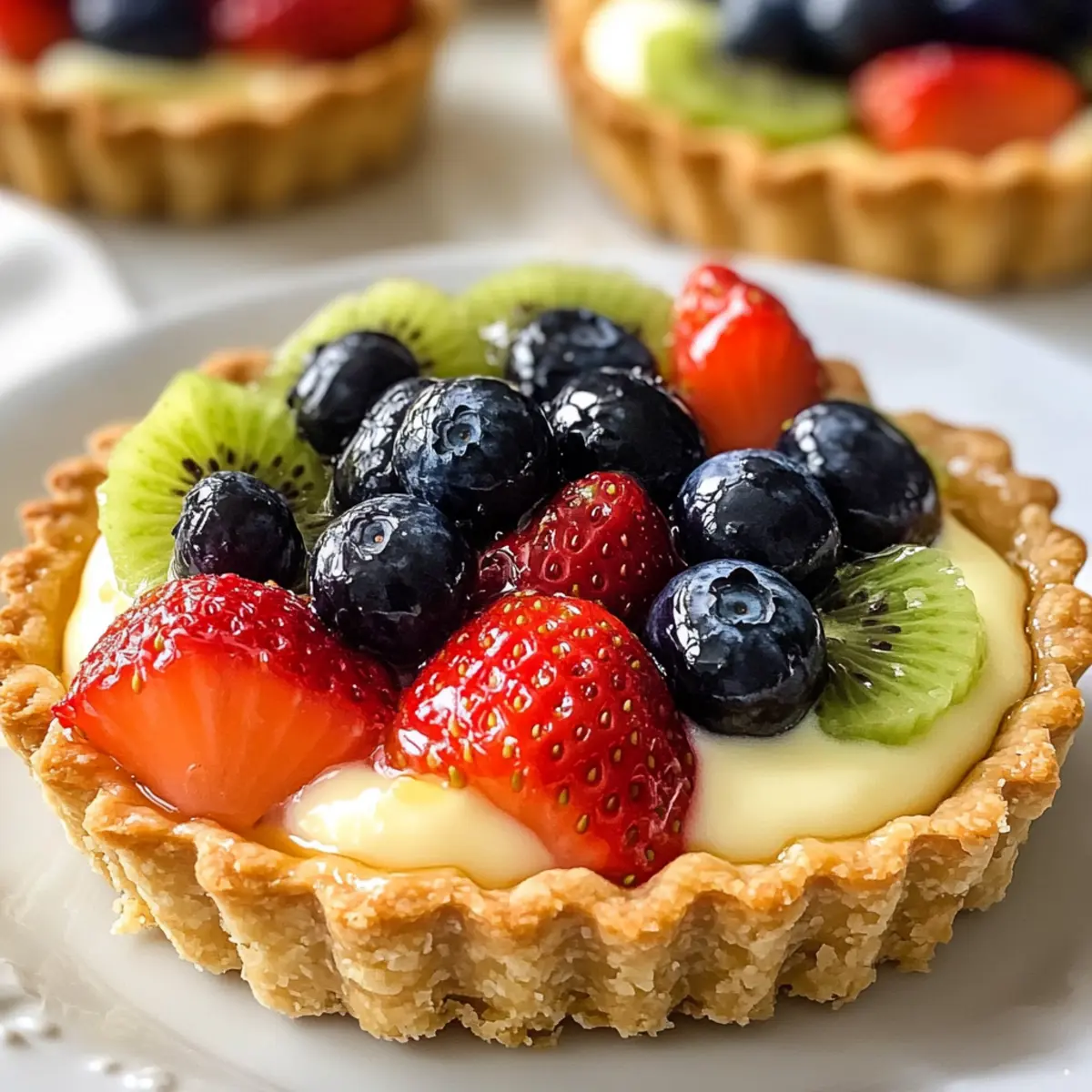- Tarts zusammensetzen: Abgekühlte Tartschalen mit Pudding füllen und frische Früchte dekorativ anrichten.
