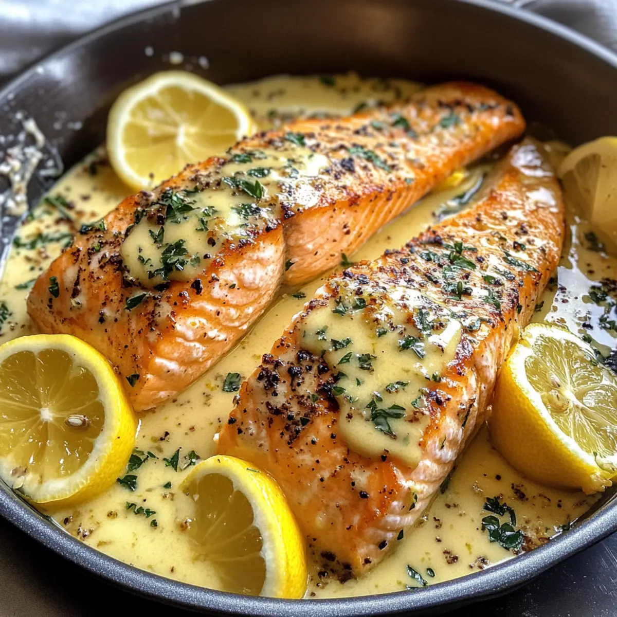 Gebackener Lachs mit Zitronenbuttercremesauce genießen