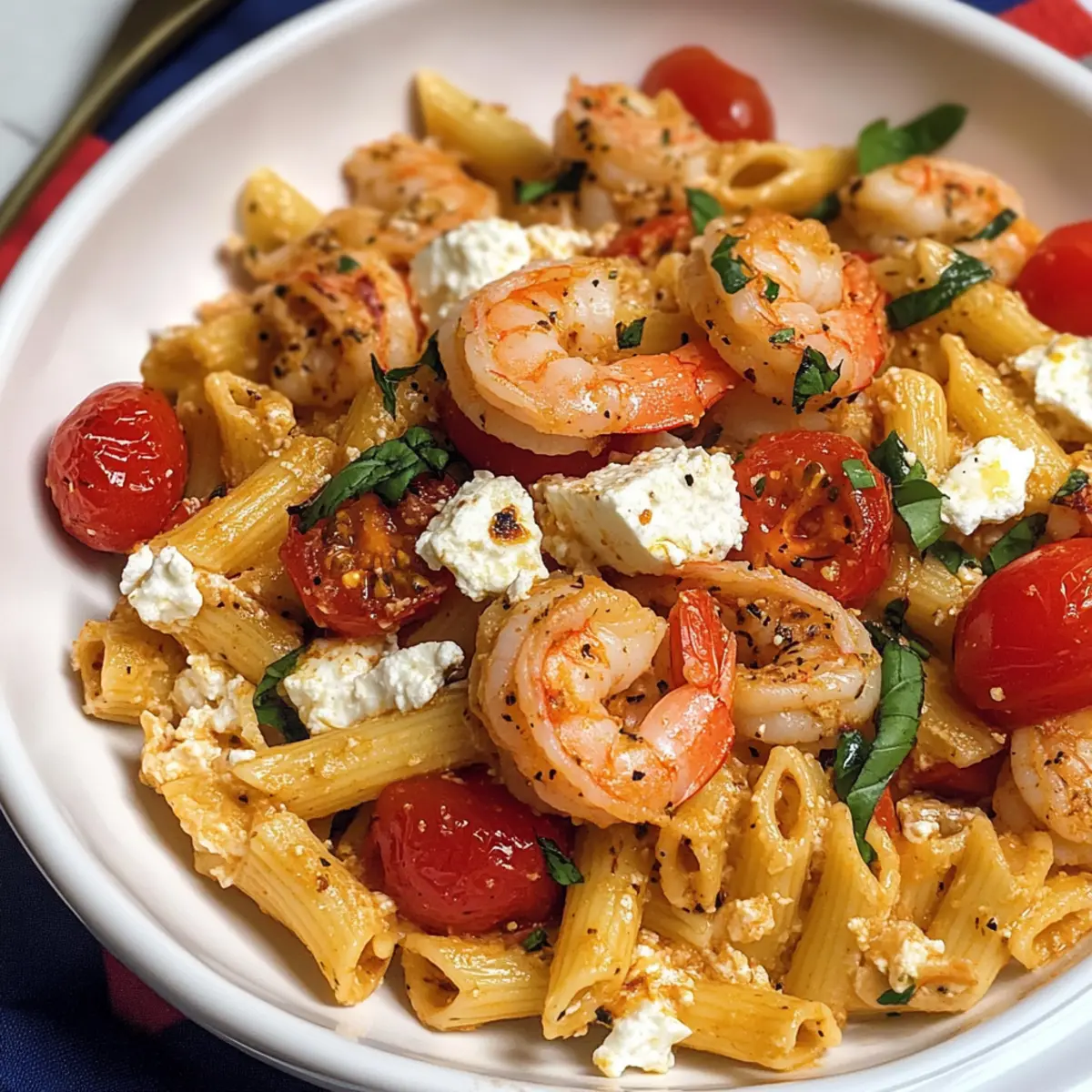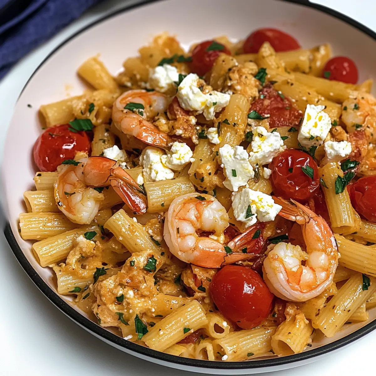 Gebratene Garnelen Feta Pasta für ein schnelles Abendessen