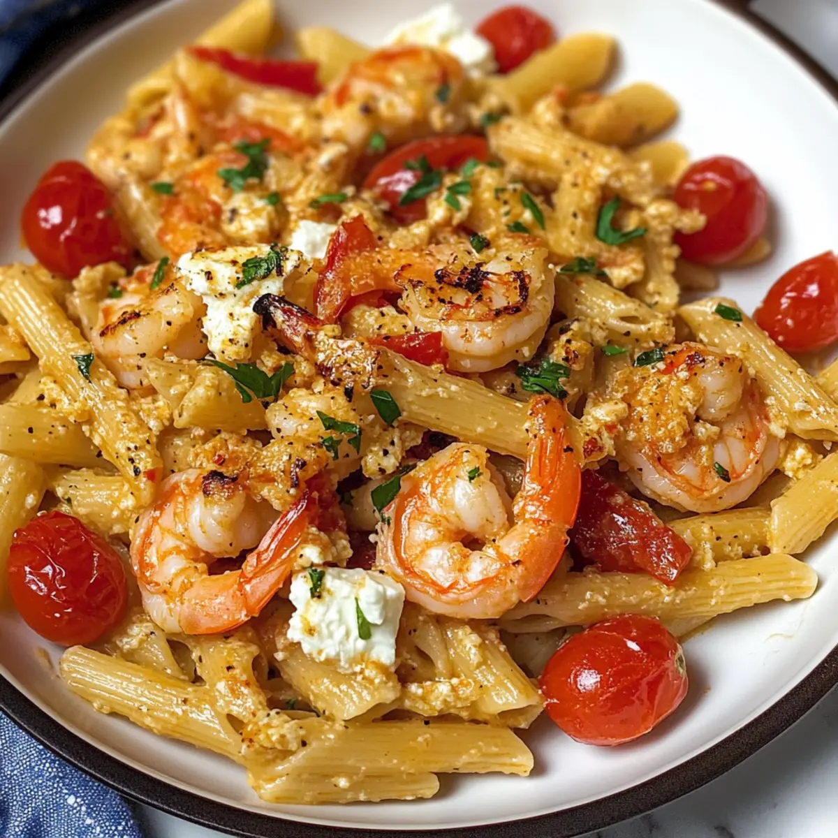 Mit diesen einfachen Zutaten gelingt die gebratene Garnelen Feta Pasta im Handumdrehen – ein ideales Rezept für alle, die auf der Suche nach leckeren, gesunden Gerichten sind!