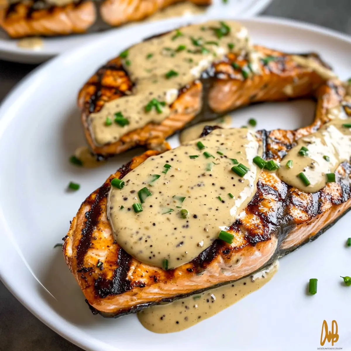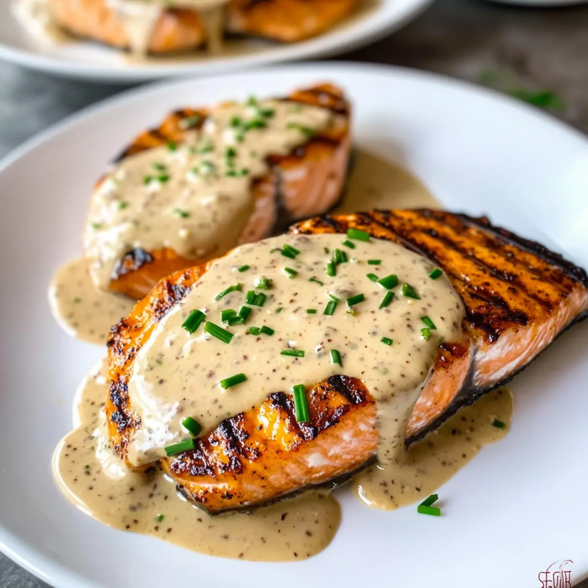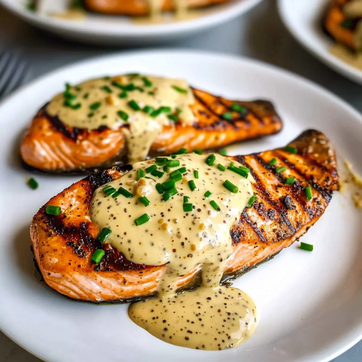 Gegrilltes Lachssteak mit cremiger Senfsauce genießen