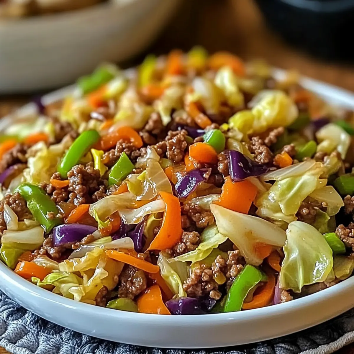 Einfachheit, die begeistert: Mit nur wenigen Zutaten zaubert ihr in nur 20 Minuten dieses köstliche Gericht. Gesunde Nährstoffe aus frischem Gemüse und proteinreichem Rinderhack machen dieses Rezept zur idealen Wahl für eine nahrhafte Mahlzeit. Vielseitigkeit, die überzeugt: Ihr könnt nach Herzenslust variieren – sei es mit Tofu für eine vegetarische Version oder zusätzlichen Gemüse wie Brokkoli. Wohlfühlgeschmack ist garantiert: Die Kombination aus zartem Rinderhack und knackigem Kohl sorgt für ein Geschmackserlebnis, das selbst den größten Fast-Food-Liebhaber überzeugen dürfte. Und für ein tolles Beilagen-Erlebnis, denkt daran, sie mit Reis oder Quinoa zu servieren!