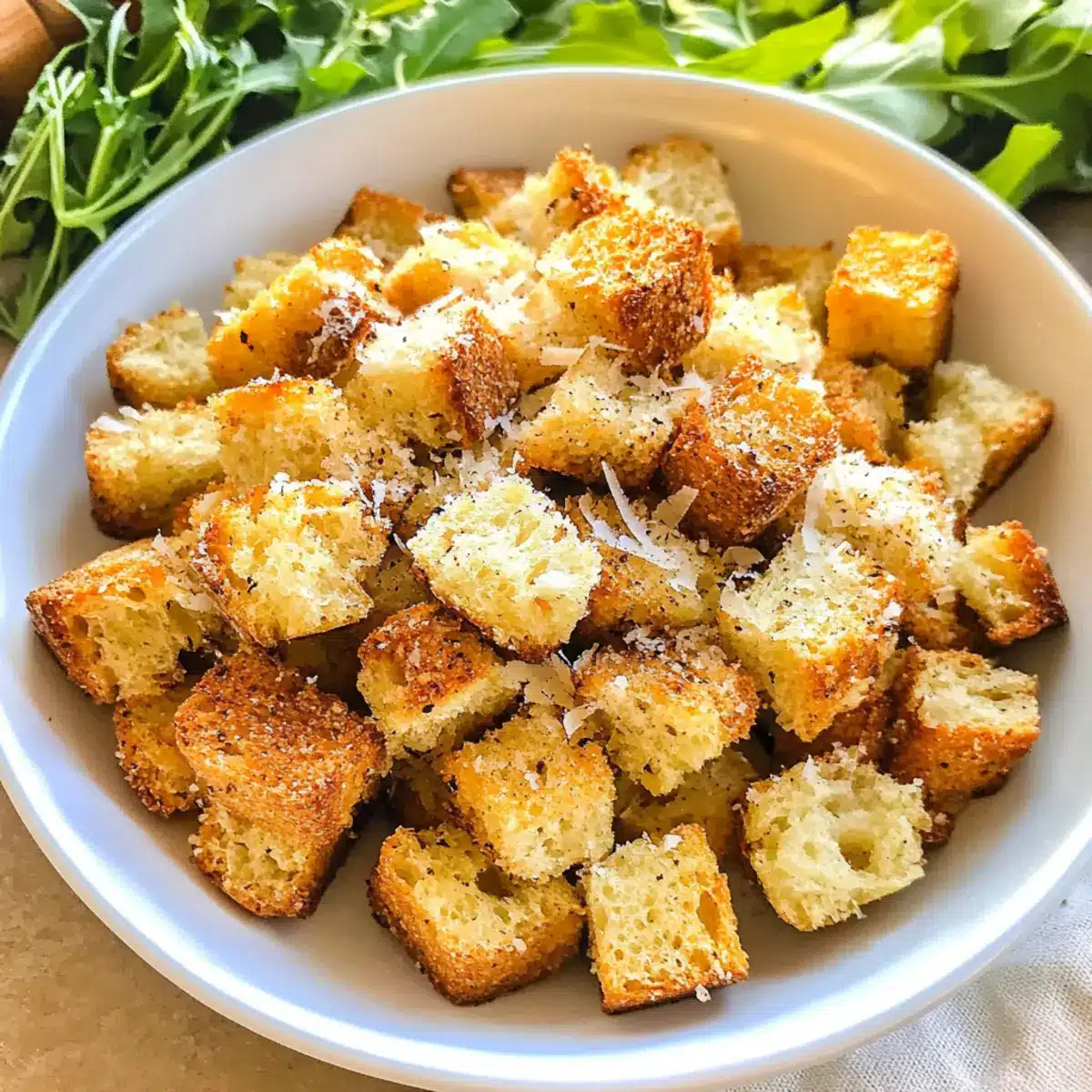 Hausgemachte Parmesan-Knoblauch-Croutons für jeden Salat