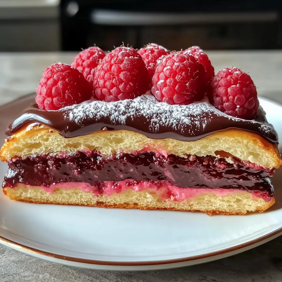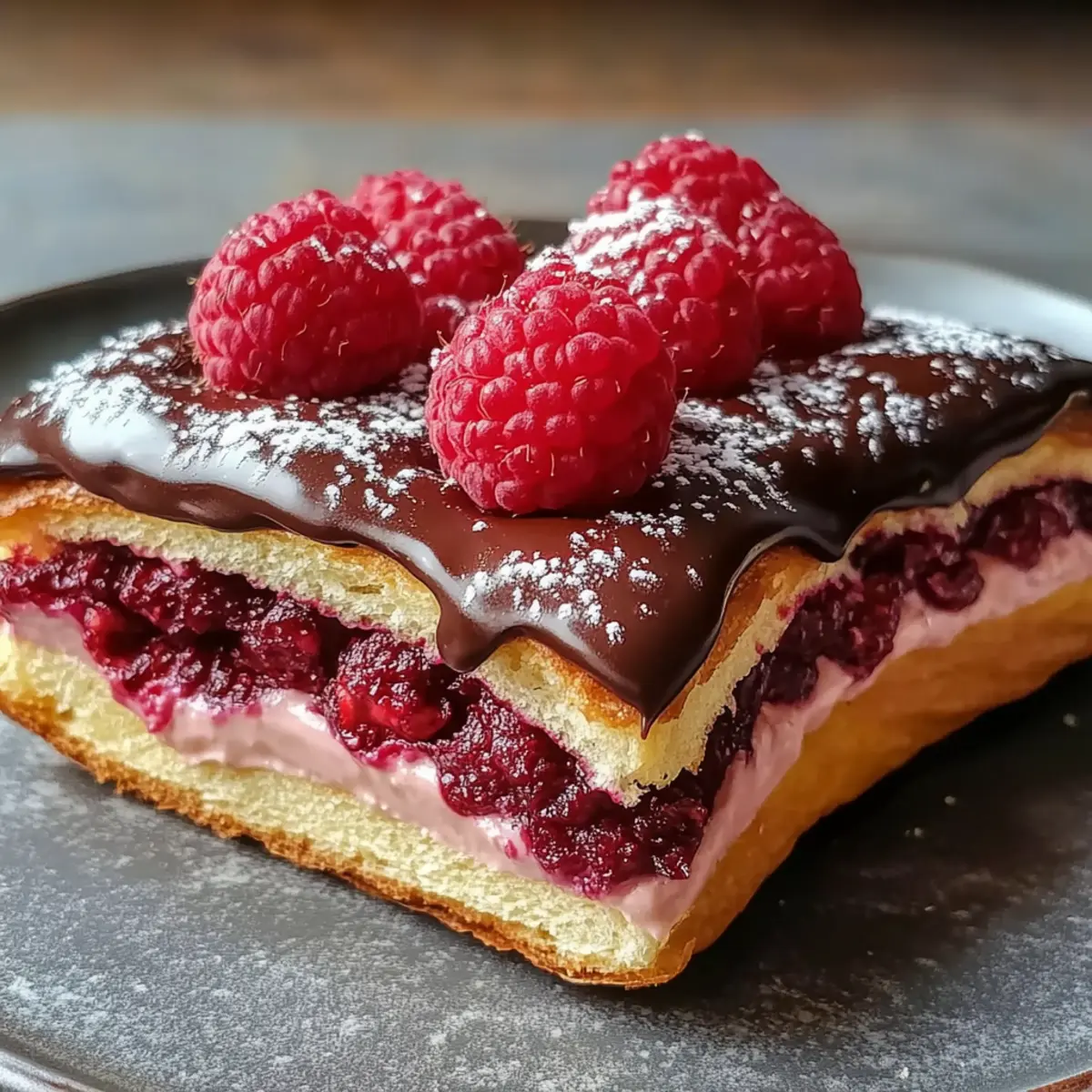 Dekorieren vor dem Servieren: Fügen Sie Puderzucker und frische Himbeeren erst kurz vor dem Servieren hinzu, um ein optimales Aussehen und Geschmack zu garantieren.