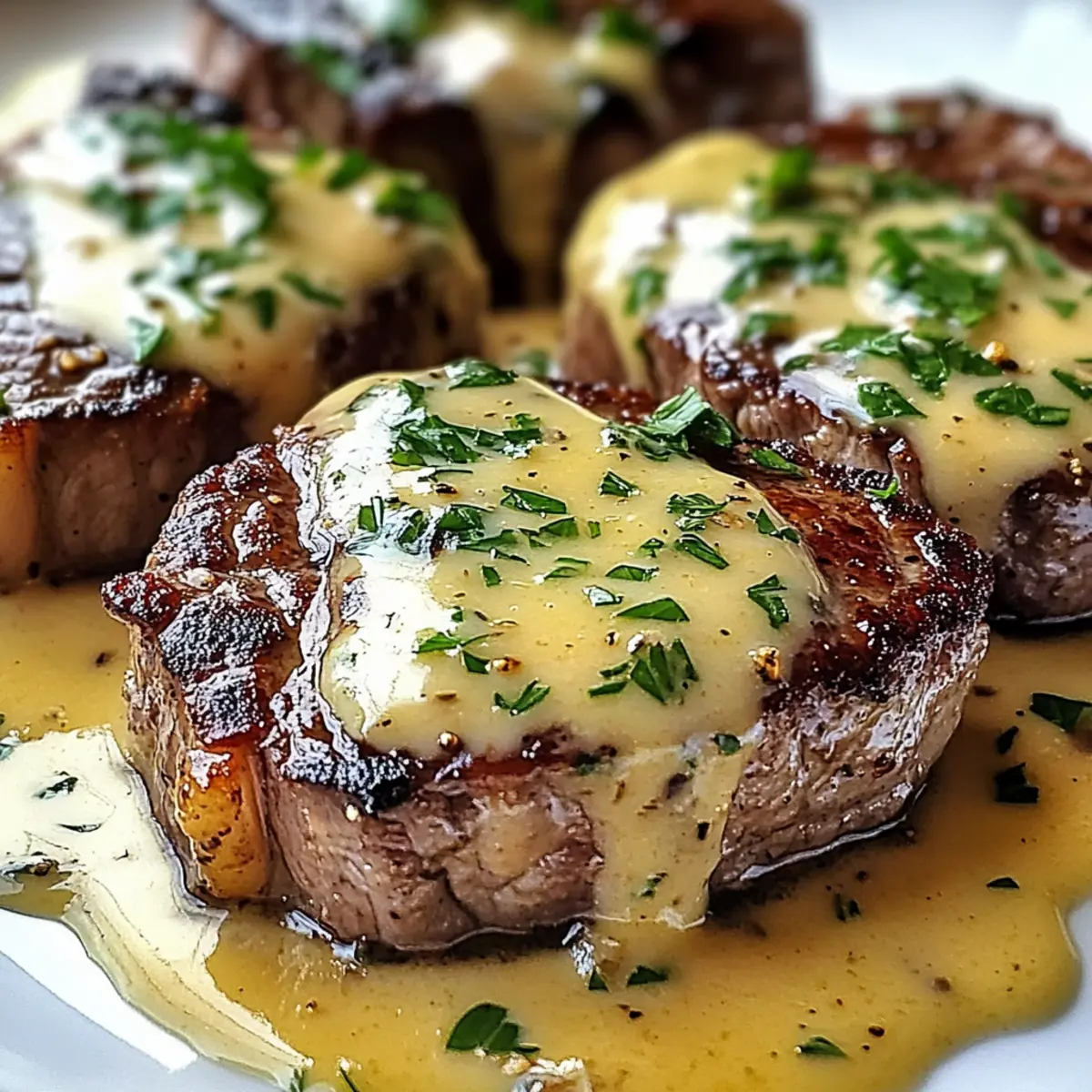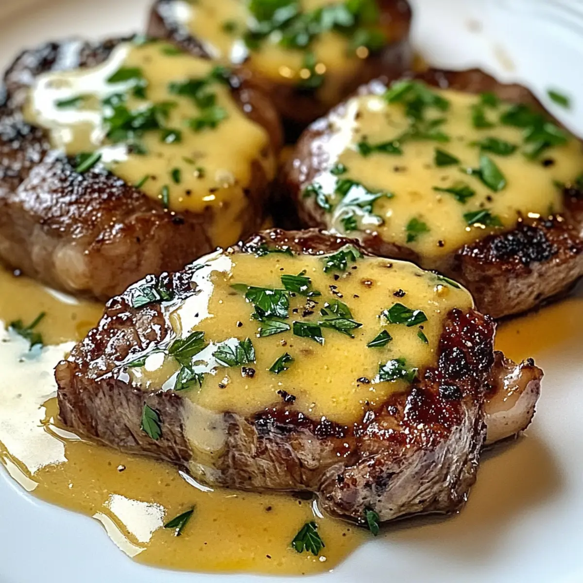 Herzhafter Knoblauchbuttersteak mit Parmesancreme