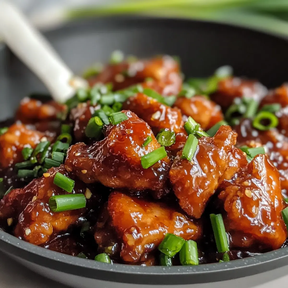 - Anrichten und Garnieren: Serviere das fertige Honig Butter Hühnchen heiß in der Pfanne und garniere es mit fein gehackten Frühlingszwiebeln.