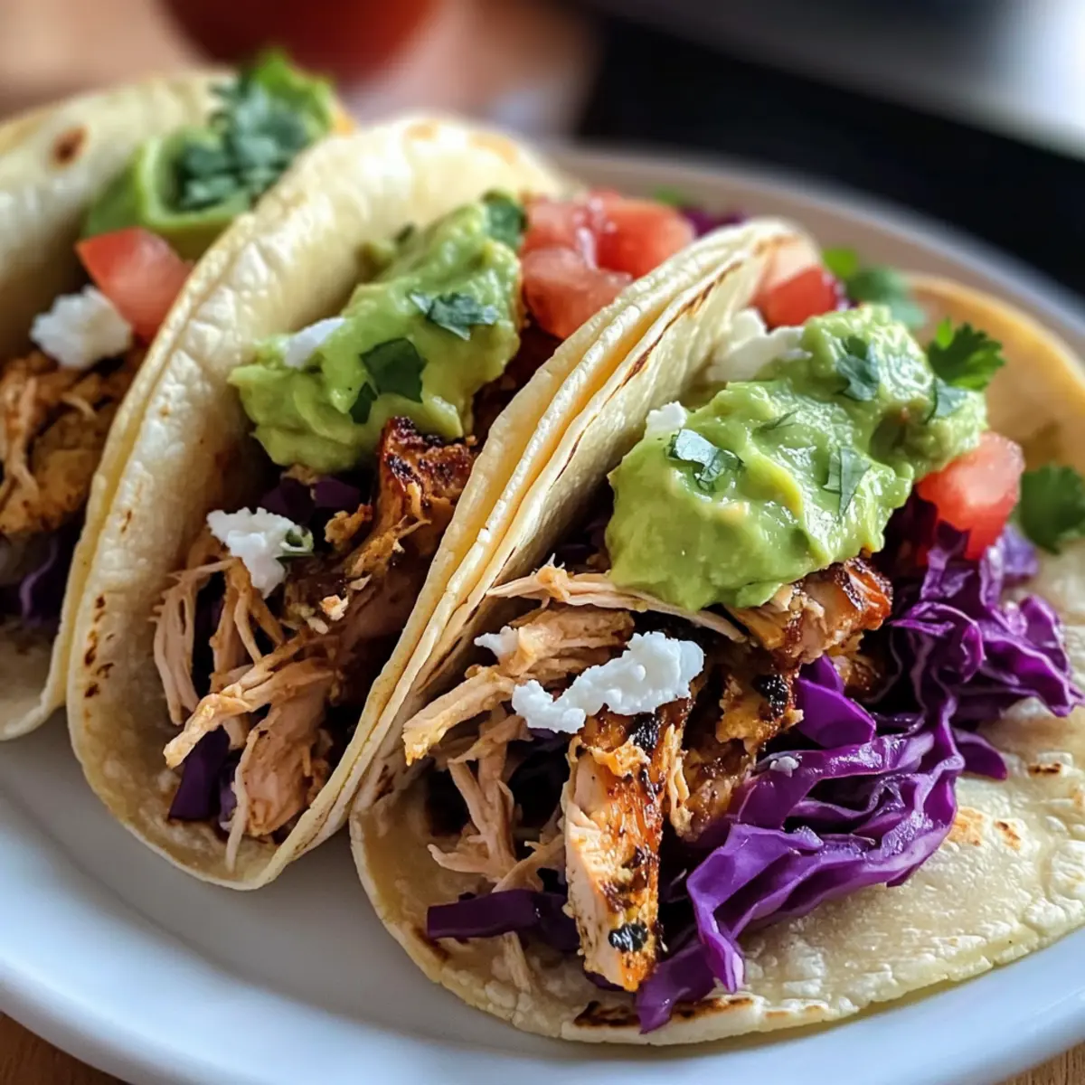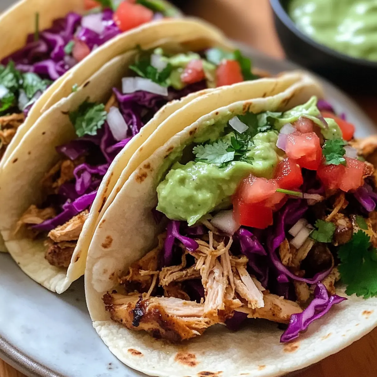 Hühnchen Tacos mit cremiger Avocado-Sauce