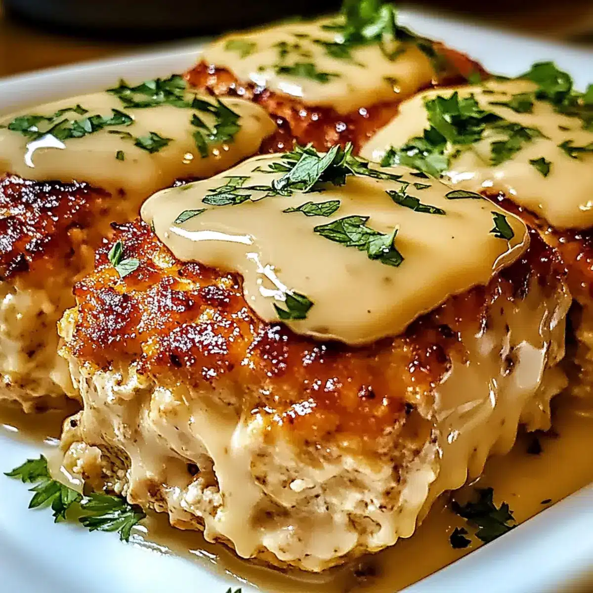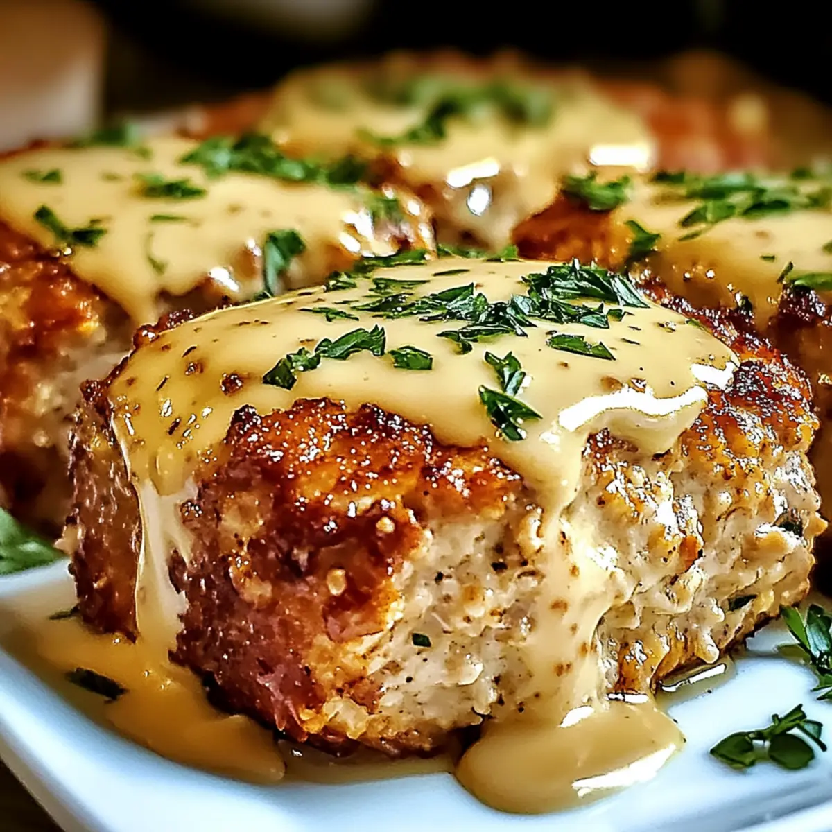 Nimm die Knoblauch Parmesan Hähnchen Fleischbällchen aus dem Ofen und serviere sie auf einem ansprechenden Teller. Drizzle die cremige Sauce großzügig über die Bällchen und garniere das Gericht mit frischer Petersilie für einen zusätzlichen Farbtupfer. Diese Kombination sorgt für ein herzhaftes und einladendes Abendessen, das garantiert jeden begeistert.