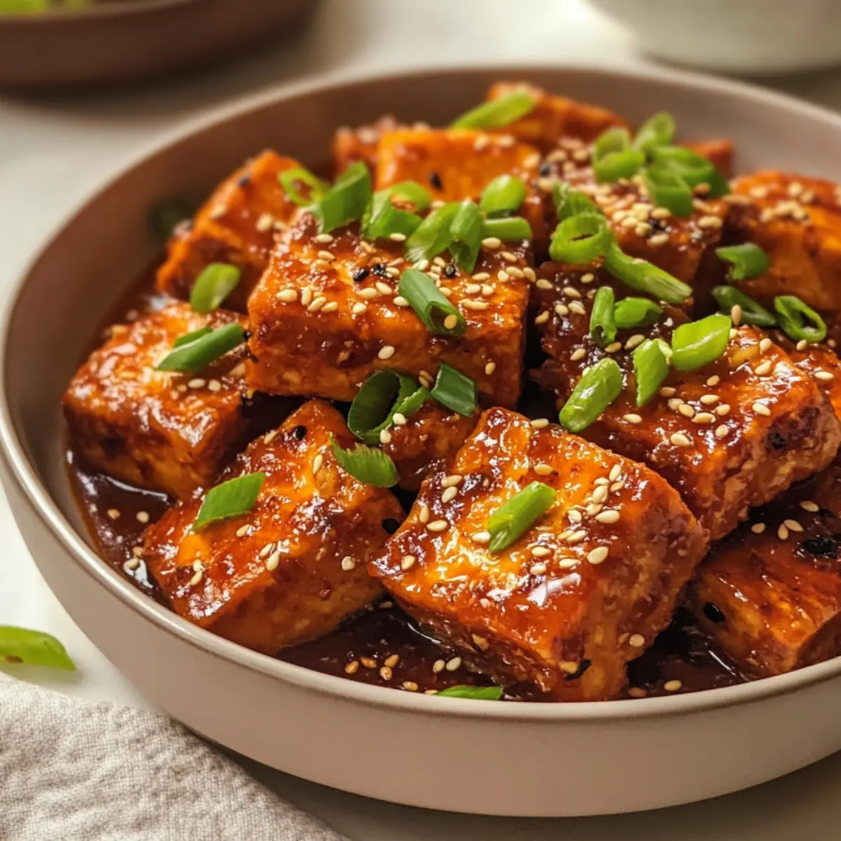 Herzhaft und Aromatisch: Die Kombination aus würziger Sauce und zartem Tofu sorgt für einen vollen Geschmack, der begeistert!