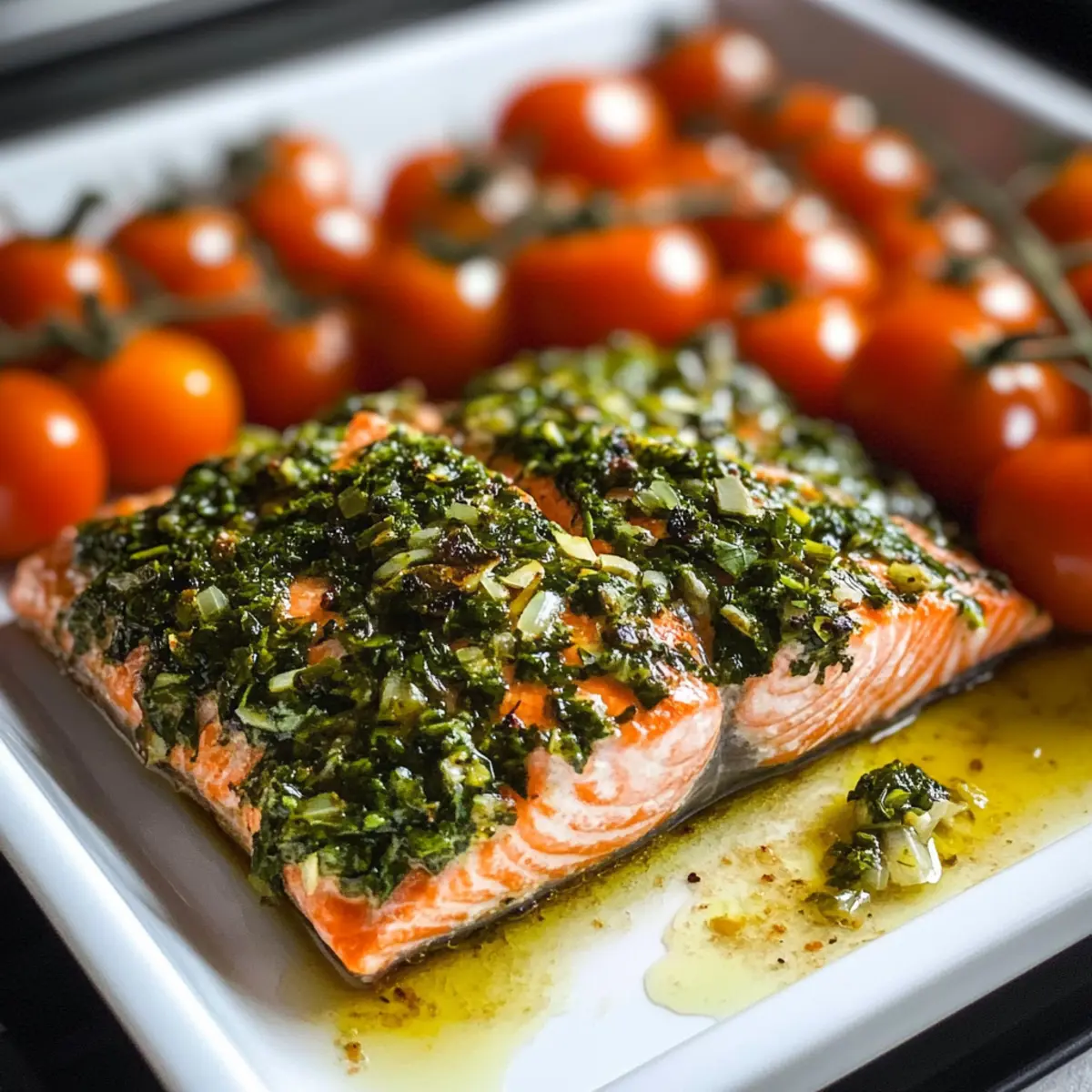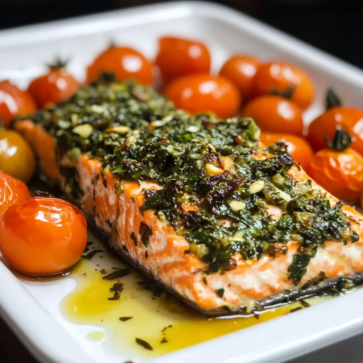 Kräuterkrustenlachs mit Knoblauch und Tomaten