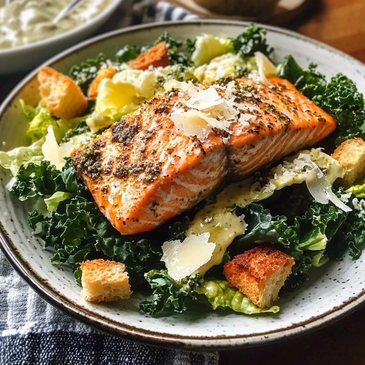 Lachs Caesar Salat mit Grünkohl Variationen