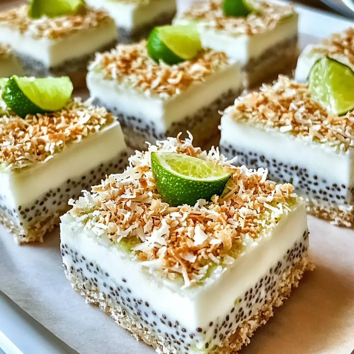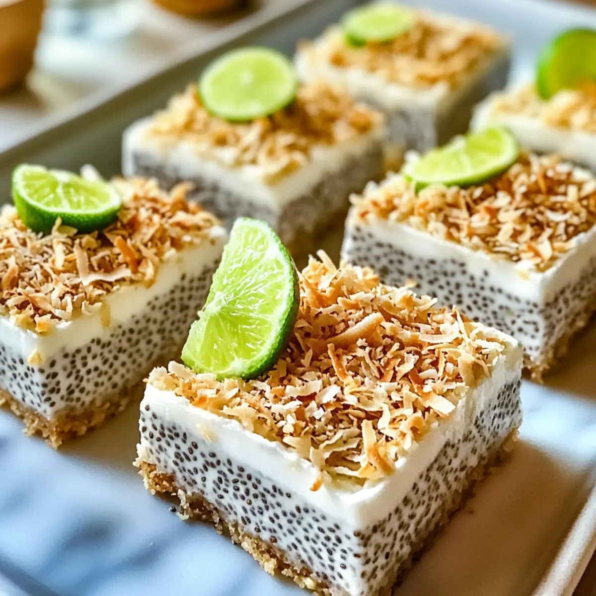 Einfache Zubereitung: In weniger als 20 Minuten hast du diese Riegel im Kühlschrank, ohne einen Ofen anschalten zu müssen. Gesunde Zutaten wie Kokosmilch und Chiasamen versorgen dich mit wichtigen Nährstoffen. Vegan und glutenfrei: Diese Riegel sind perfekt für jeden, der auf seine Ernährung achtet. Anpassungsfähig: Experimentiere mit verschiedenen Toppings oder Geschmackskombinationen, wie zum Beispiel dunkler Schokolade oder getrockneten Früchten. Frischer Geschmack: Die Kombination von Limette und Kokos entführt dich geschmacklich an tropische Strände. Platzsparend: Ideal für Meal Prep – bereite sie vor und genieße sie die ganze Woche über!