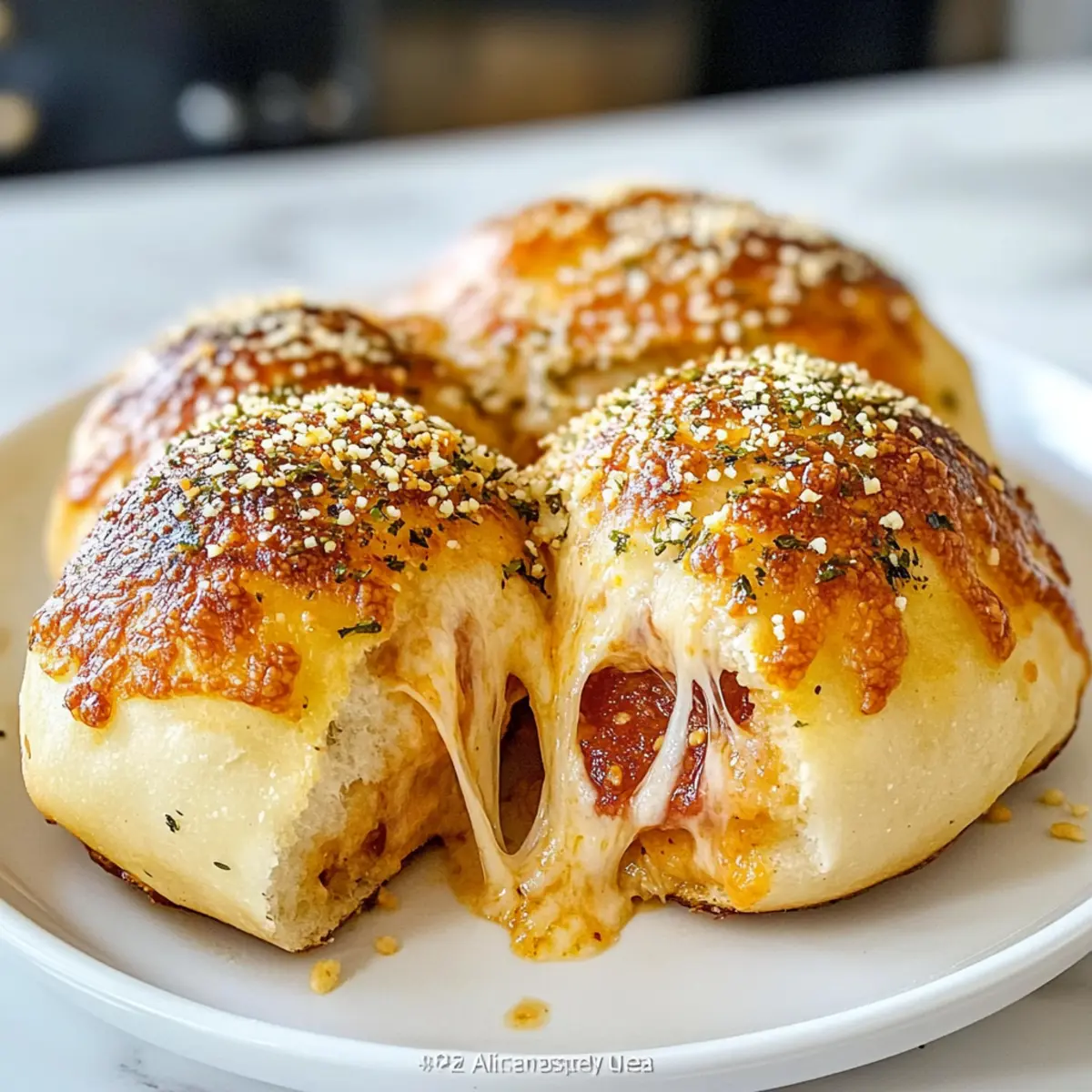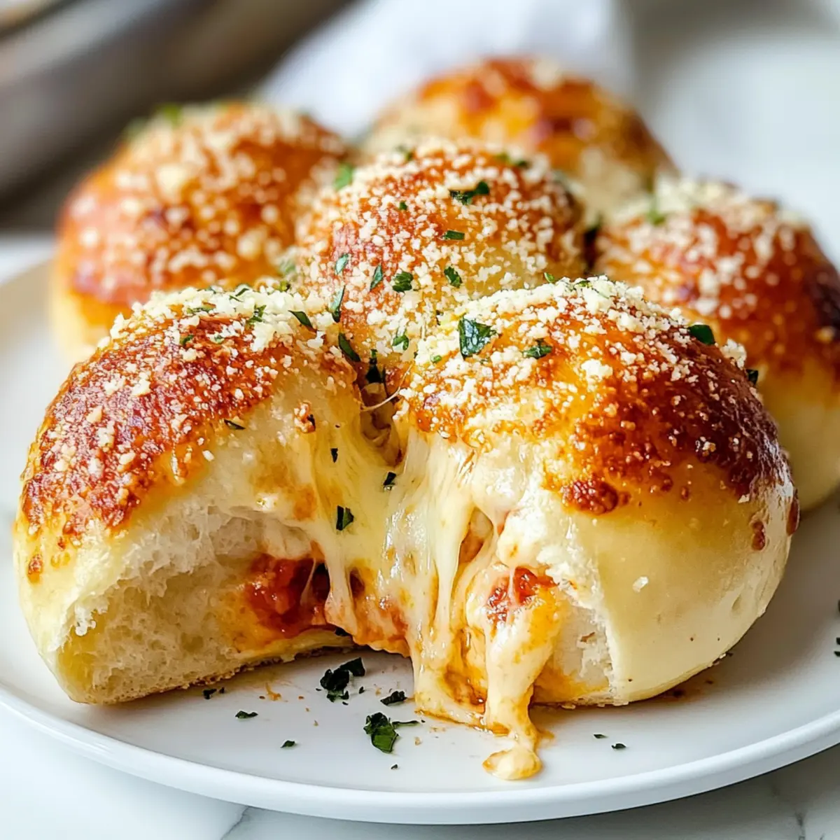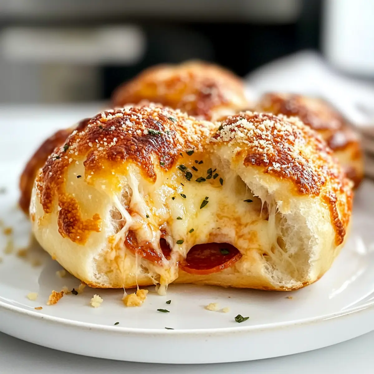 - Bestreue die Pizza-Bomben sofort mit geriebenem Parmesan und serviere sie warm.