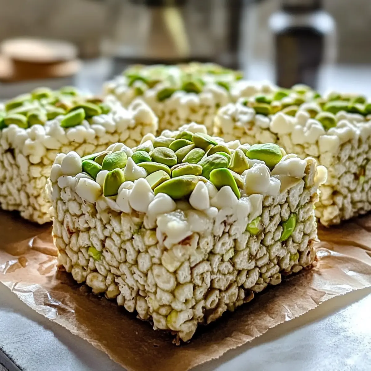 Pistazien- und weiße Schokoladen-Reis-Krispies-Leckereien