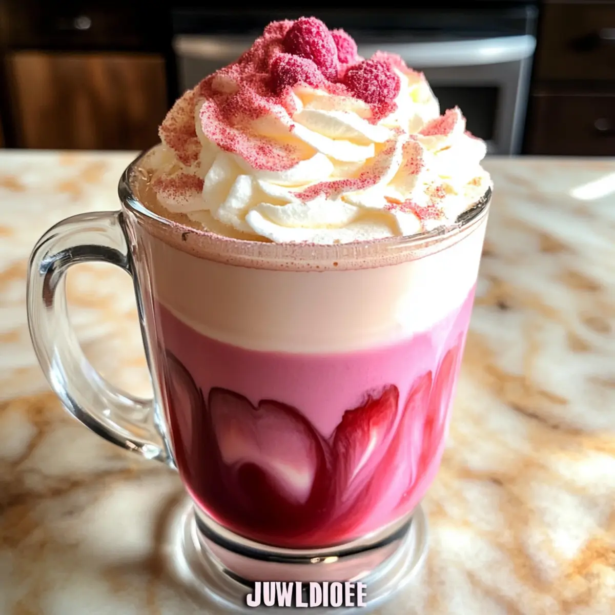 - Iced Variante: Füge Eiswürfel zur rosa Milch hinzu, bevor du den Espresso eingießt, für einen erfrischenden Eiskaffee.