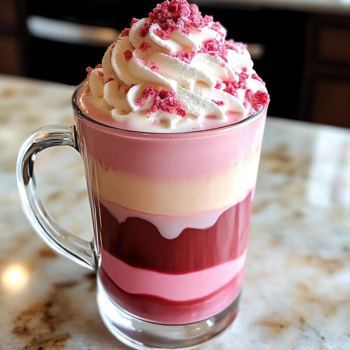 Gefrierschrank:: Es wird nicht empfohlen, den Rosa Samt Macchiato einzufrieren, da die Textur von Milch und Schokolade beim Auftauen leidet. Stattdessen empfiehlt es sich, die Zutaten separat zu lagern und frisch zuzubereiten.
