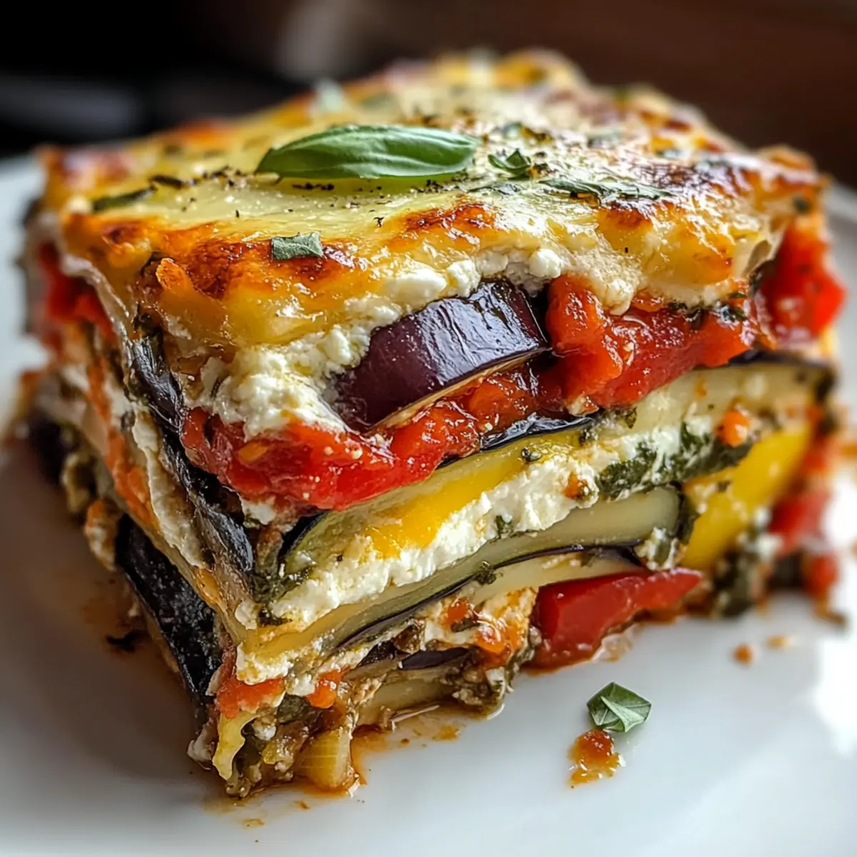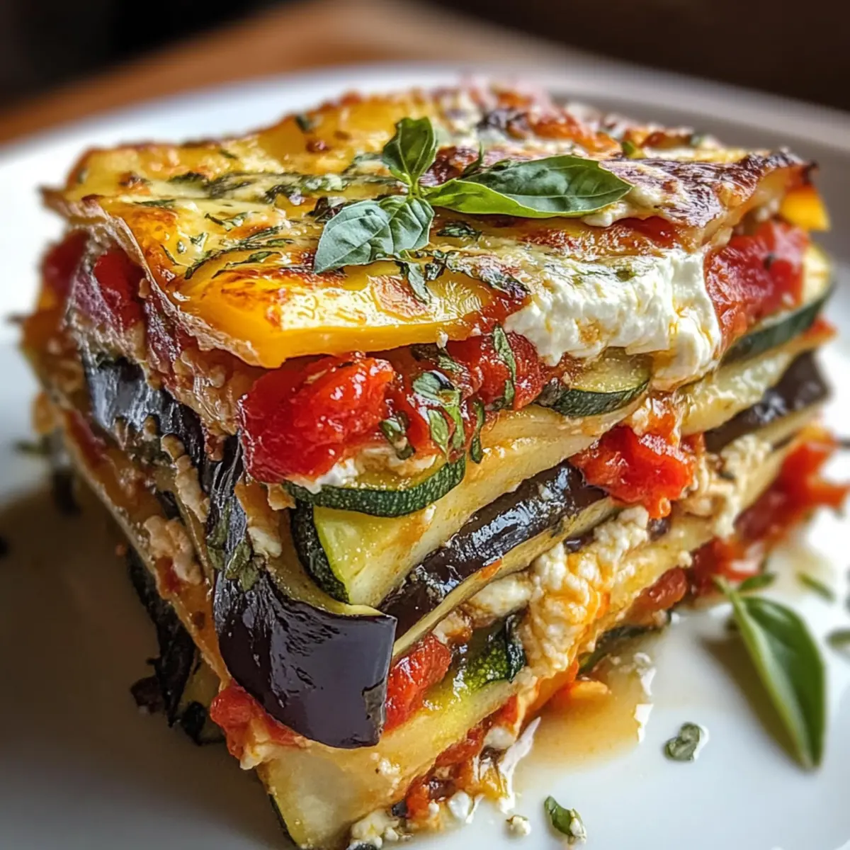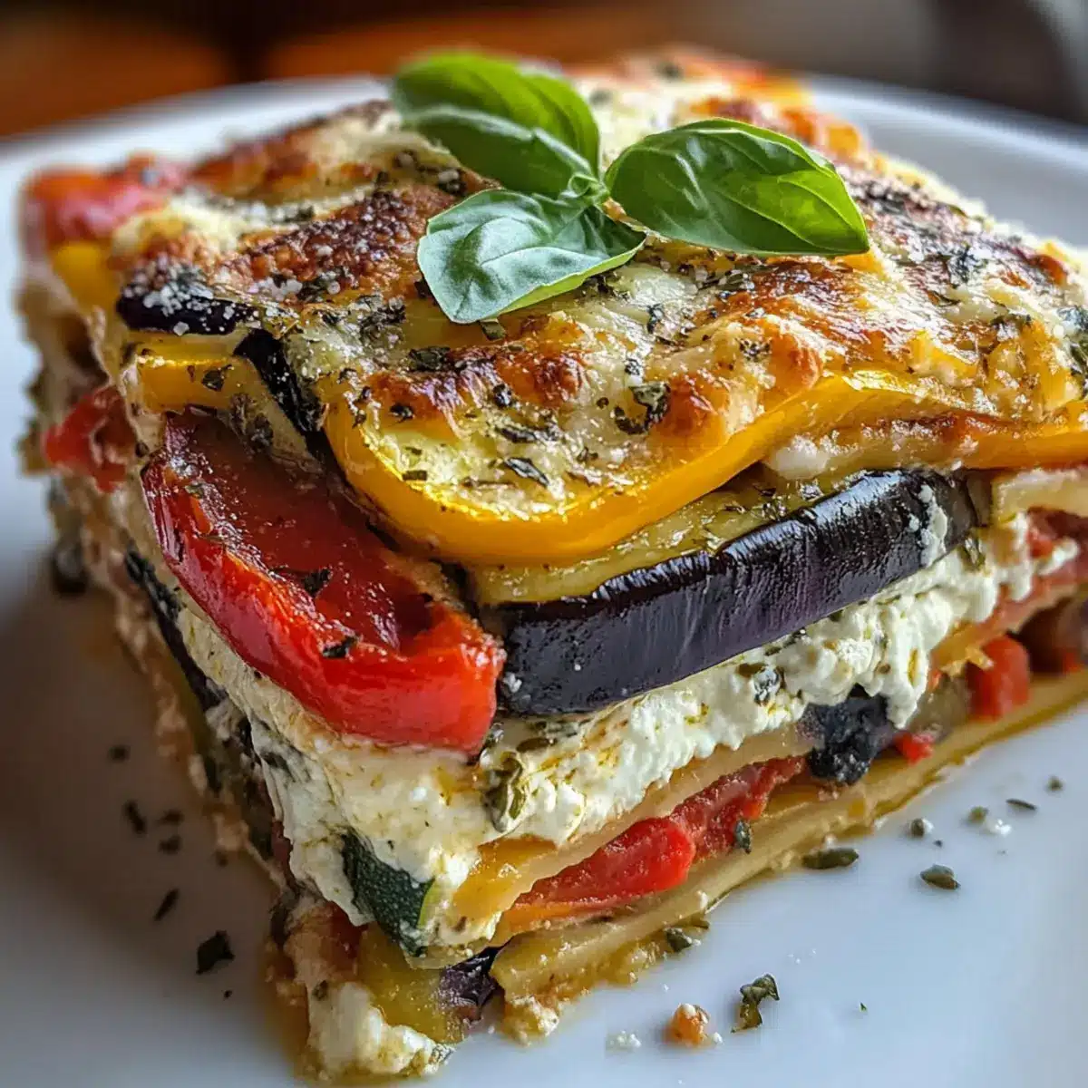 Lassen Sie die Schichtgemüse-Lasagne mit cremiger Ricotta nach dem Backen etwa 10 Minuten ruhen, damit sich die Schichten setzen. Vor dem Servieren mit frischen Basilikumblättern garnieren. Diese kurze Wartezeit sorgt dafür, dass die Lasagne beim Schneiden nicht auseinanderfällt und Sie perfekte Stücke erhalten.