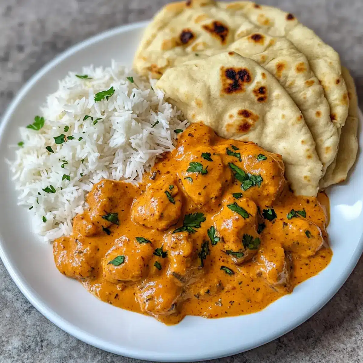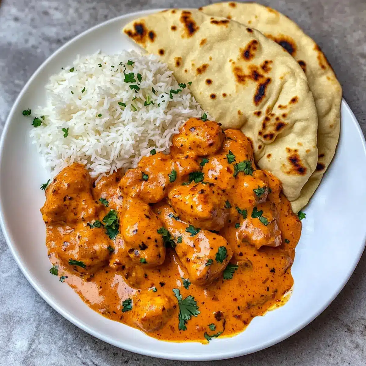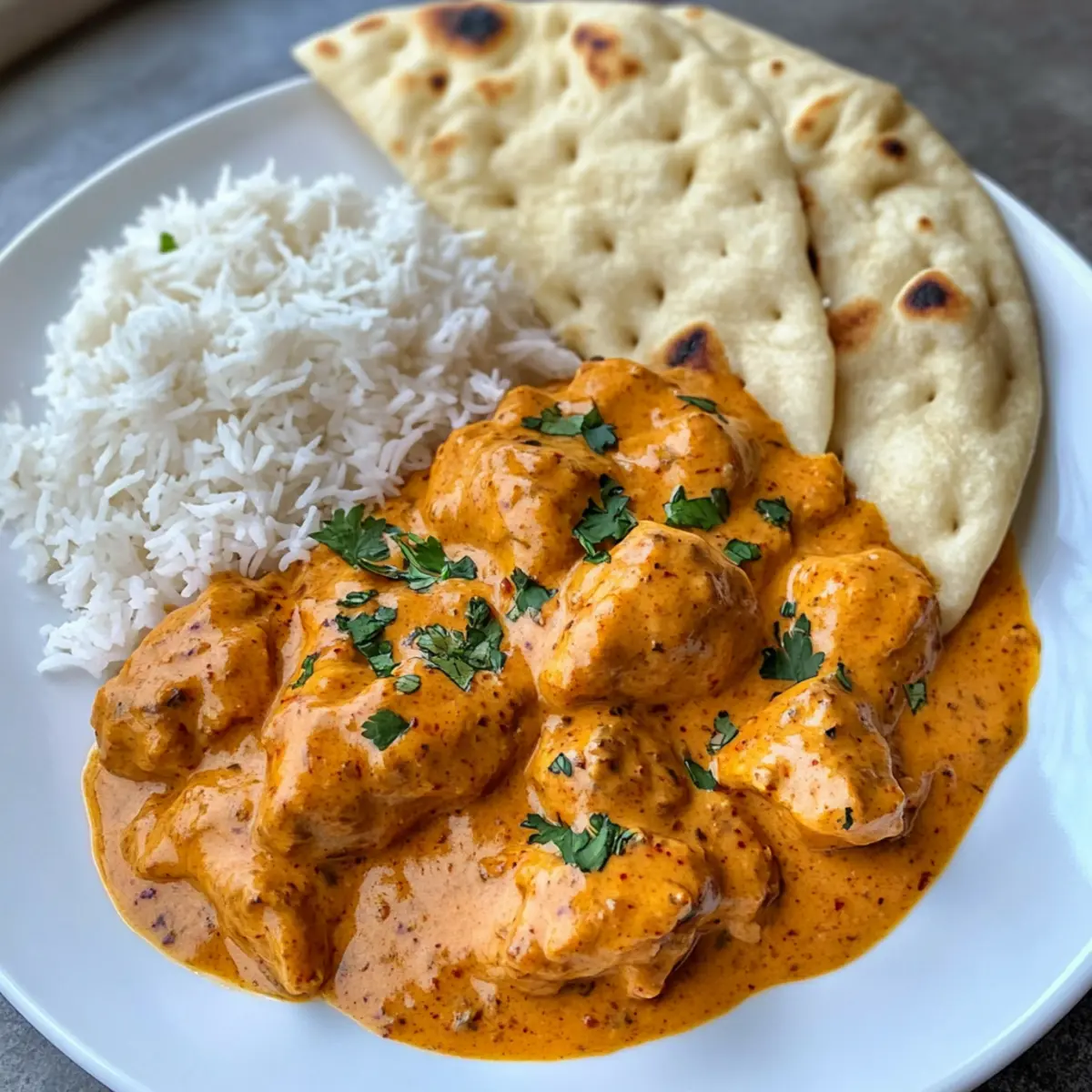 - Warmes Naan: Dieses himmlische Brot ist ideal, um die Sauce aufzutunken und liefert zudem eine schöne, knusprige Textur.