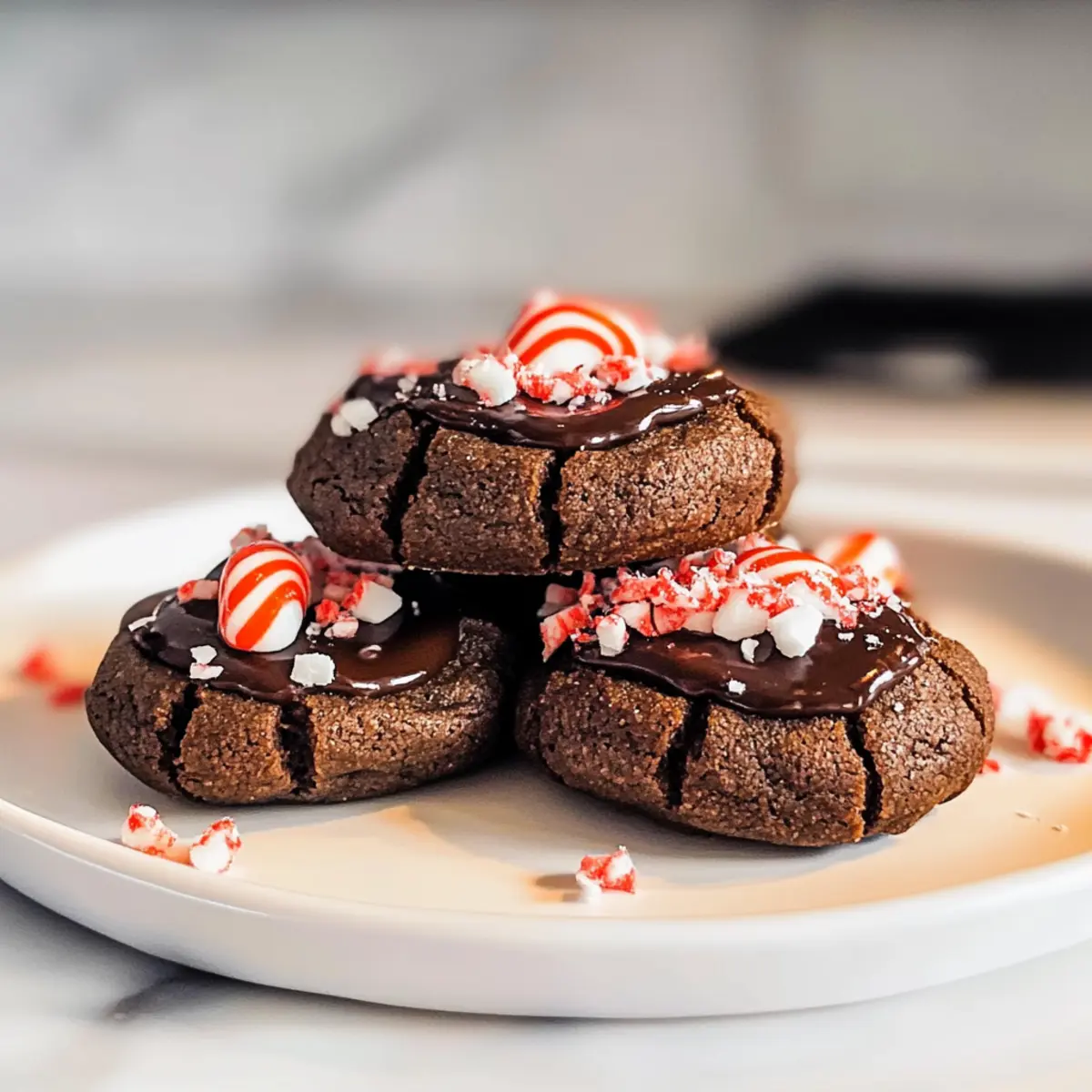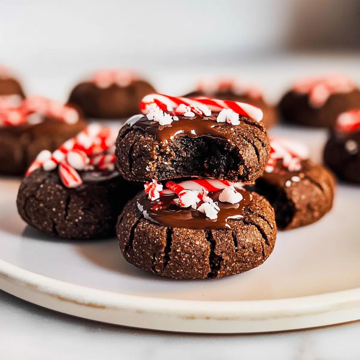 Sobald die Kekse abgekühlt sind, nimm einen Löffel und fülle die Vertiefungen in den Keksen großzügig mit der Ganache. Lass die Schokolade etwas abkühlen und fest werden. Wenn du magst, kannst du nun die Kekse mit zerstoßenen Zuckerstangen dekorieren, um einen festlichen Touch hinzuzufügen.