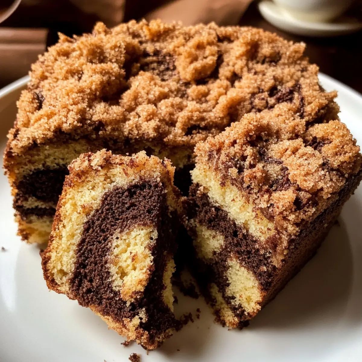 Die Zubereitung des Schokoladen-Espresso-Marmorkuchens mit Streuseln ist ideal für Meal Prep und hilft, Zeit in einer hektischen Woche zu sparen! Du kannst die Streusel bis zu 3 Tagen im Voraus zubereiten und sie in einem luftdichten Behälter im Kühlschrank aufbewahren, sodass sie frisch und knusprig bleiben. Der Kuchenteig lässt sich ebenfalls bis 24 Stunden vor dem Backen fertigstellen; bewahre diesen einfach abgedeckt im Kühlschrank auf, um die Qualität zu erhalten. Wenn du bereit bist, den Kuchen zu backen, nimm den Teig heraus, verteile ihn in der Form, füge die Streusel hinzu und backe ihn gemäß den Anweisungen. Dadurch schaffst du ein köstliches Ergebnis mit minimalem Aufwand, perfekt für jede Gelegenheit!
