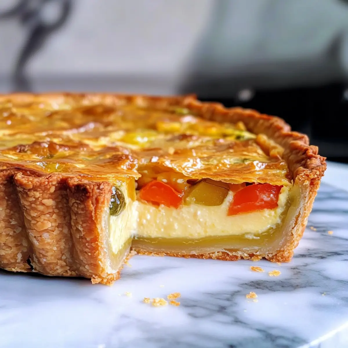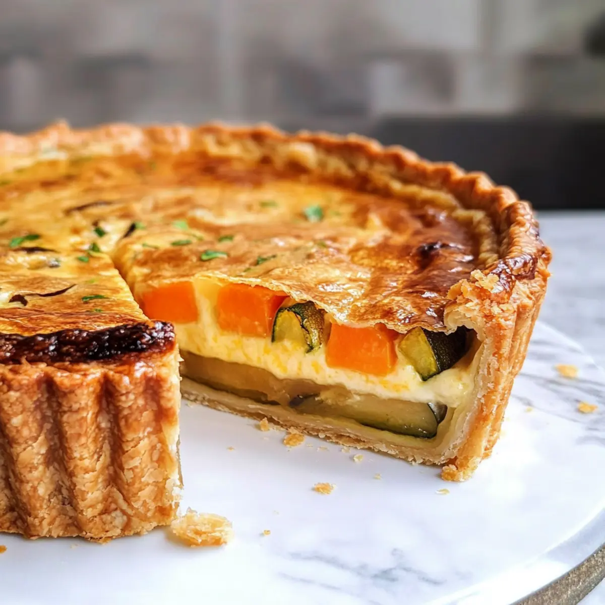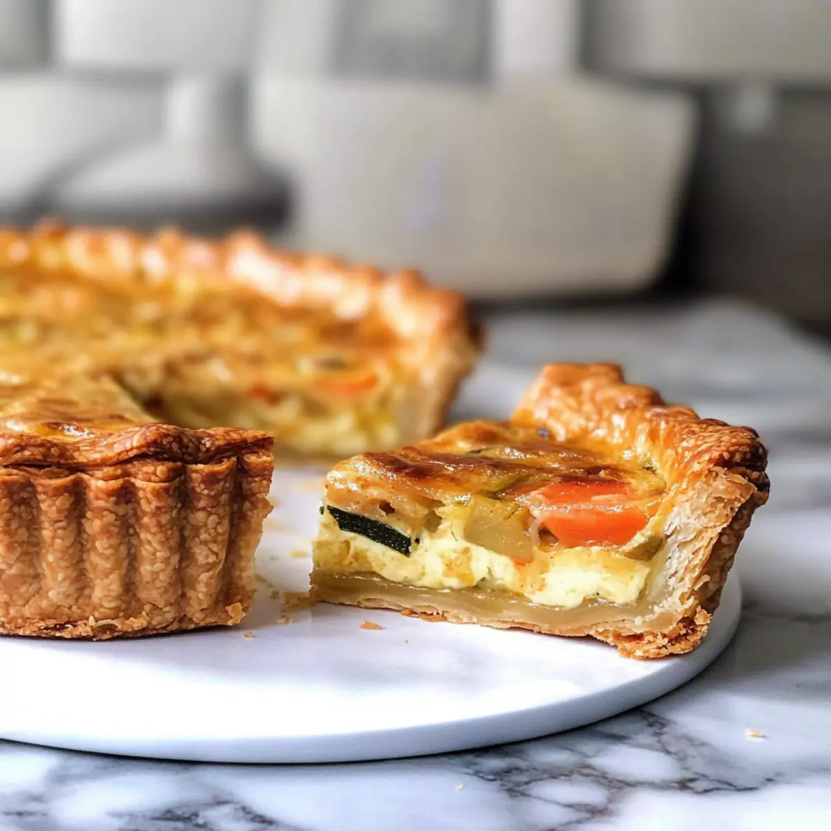 Herzhafte Quiche: Eine klassische Kombination, die die buttrige Pâte brisée perfekt ergänzt. Die Füllung aus Eiern und Gemüse schmilzt auf der Zunge.