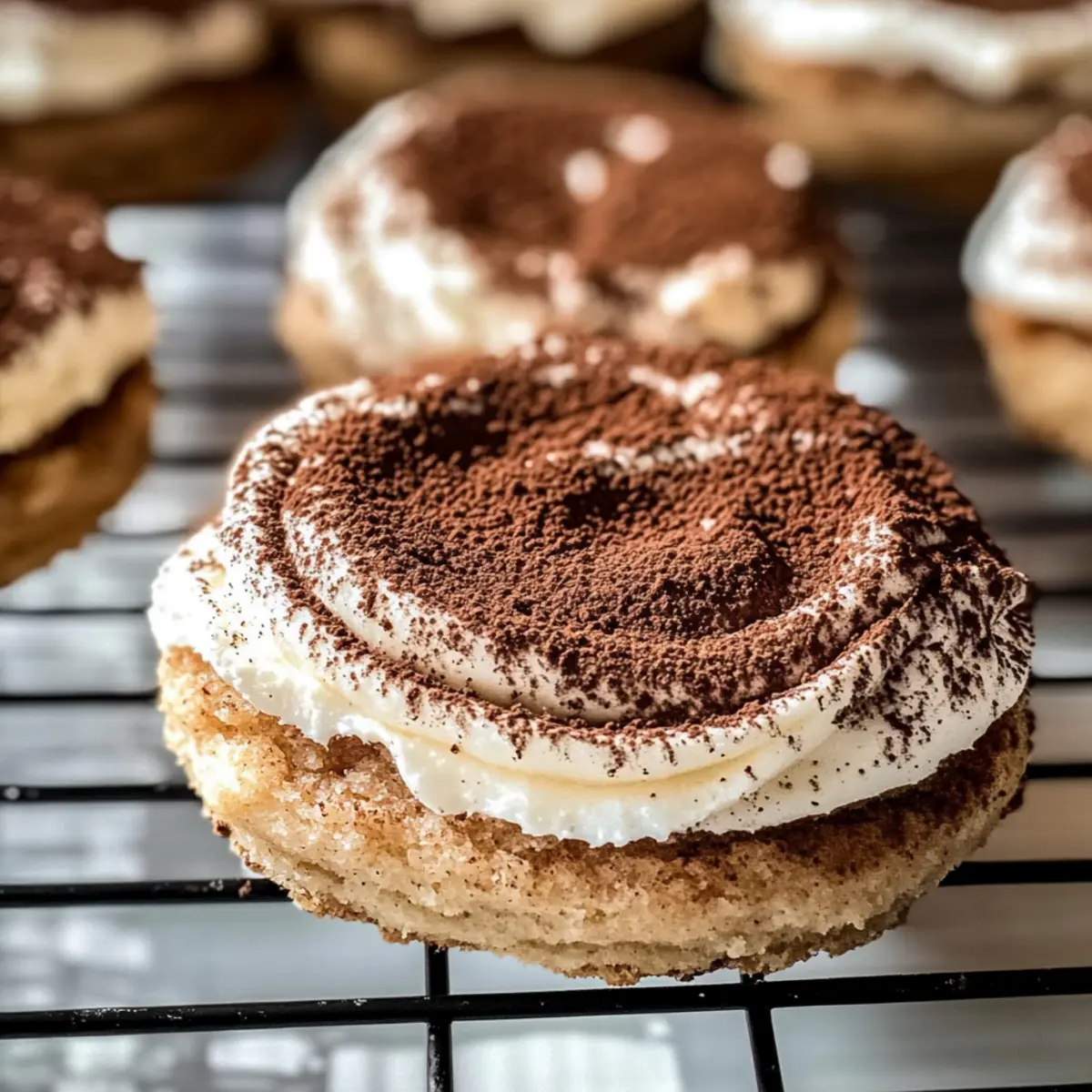 Die Tiramisu Plätzchen sind perfekt für die Meal Prep und sparen dir wertvolle Zeit an hektischen Tagen! Du kannst den Keksteig bis zu 24 Stunden im Voraus zubereiten und im Kühlschrank aufbewahren, um ihn dann bis zu 48 Stunden später zu backen – einfach Hitze abschalten, den Teig portionieren und gleichmäßig backen, um die frische Konsistenz zu bewahren. Alternativ kannst du die gebackenen Kekse auch komplett bis zu 3 Tage im Voraus einfrieren; dabei ist es wichtig, sie in einem luftdichten Behälter zu lagern, um ihre Zartheit zu erhalten. Wenn du bereit bist zu genießen, lasse die Kekse auf Raumtemperatur kommen und dekoriere sie mit dem Mascarpone-Frosting sowie einer Prise Kakaopulver für ein einfaches, aber köstliches Dessert!