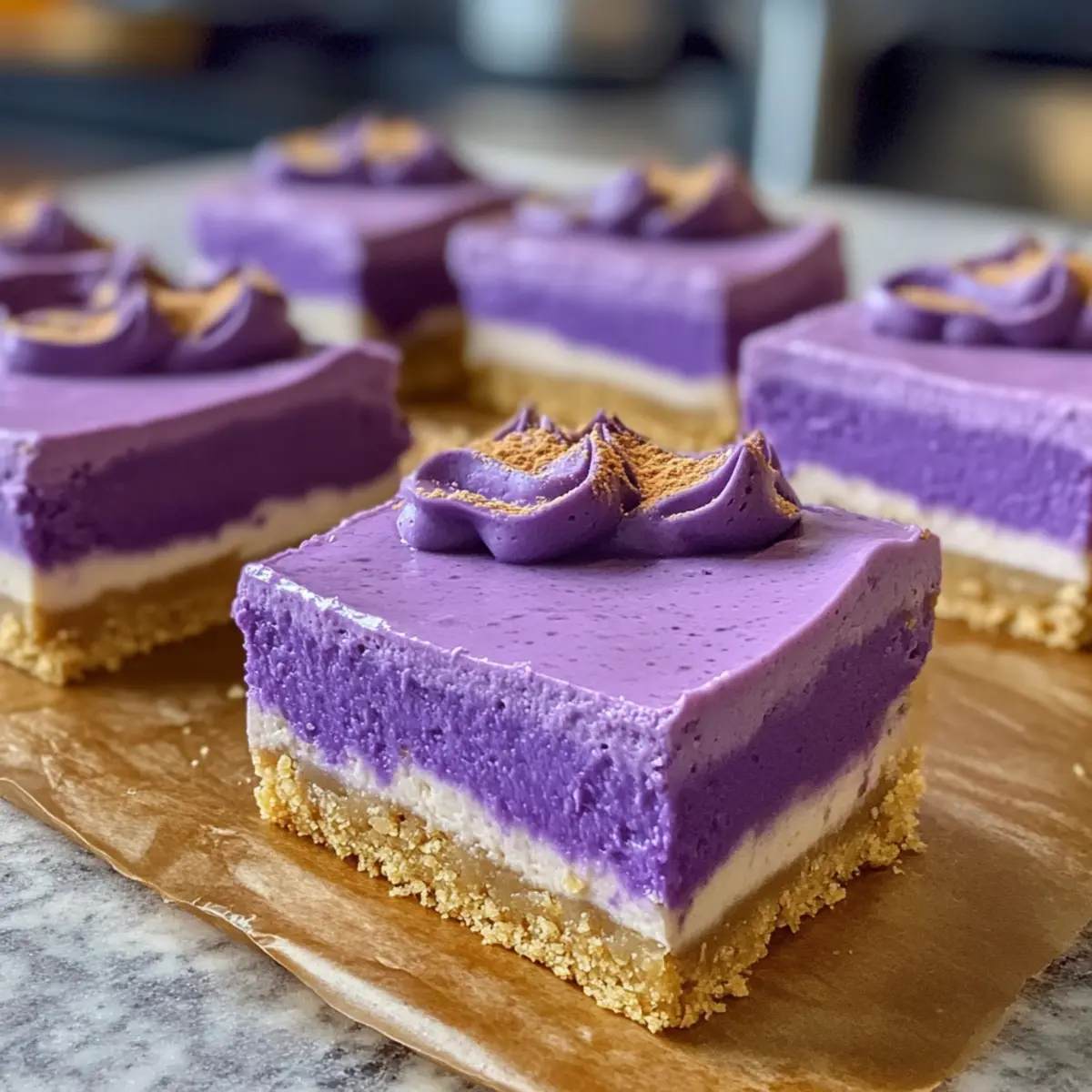 Ube Käsekuchen Riegel für einen süßen Genuss