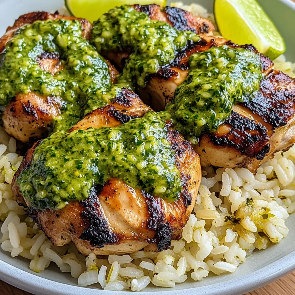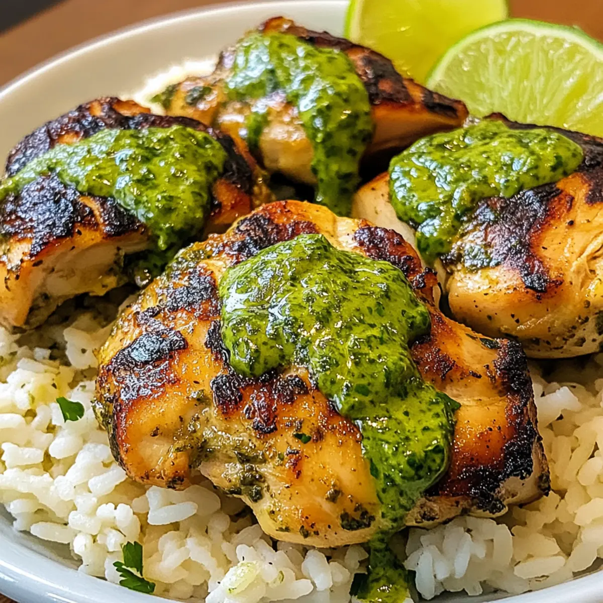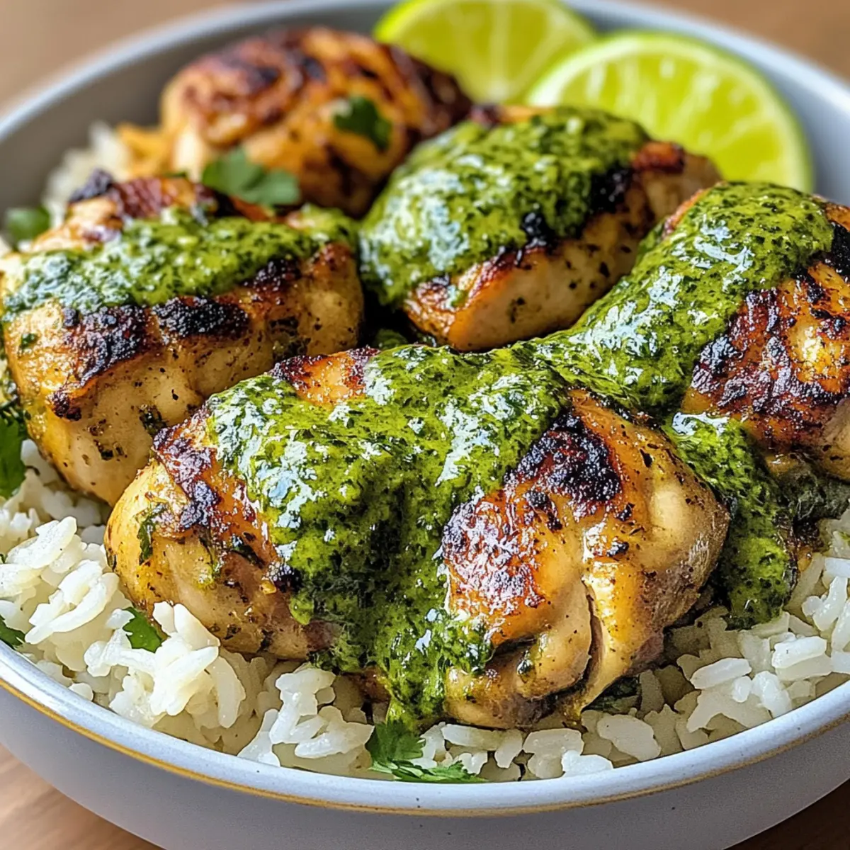 - Serviere die Hühnchenkeulen auf Jasminreis, übergossen mit grüner Sauce. Garniere nach Wunsch mit frischem Koriander und Limettenscheiben.